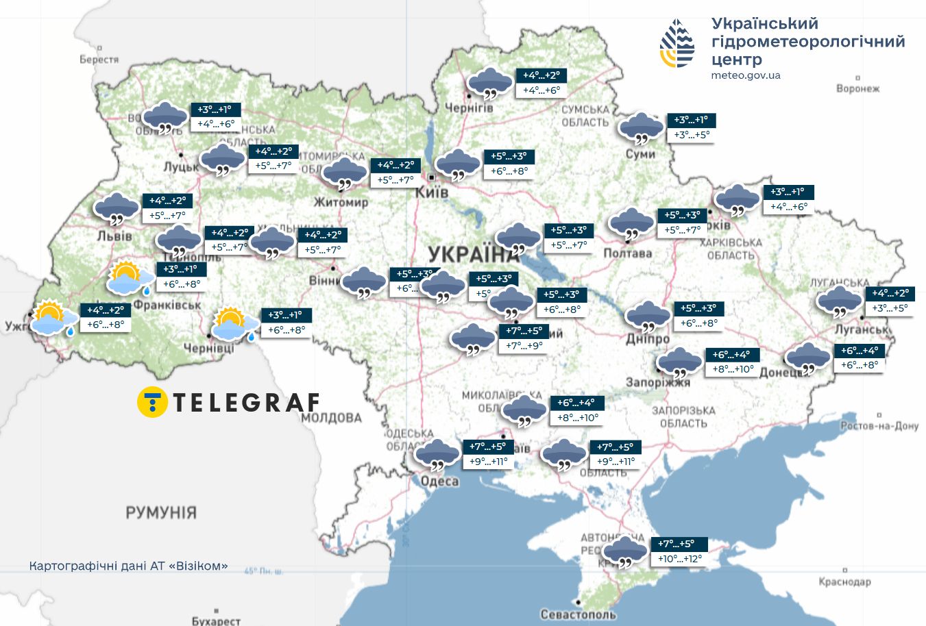 У вівторок, 2 грудня, на українців чекає погода без істотних опадів, а в західних областях може пройти невеликий дощ. Вночі температура становитиме +5°…+3°, а в день +6°…+8°. Як і очікується, найтепліше буде в Одеській, Миколаївській, Запорізькій областях та в Криму.