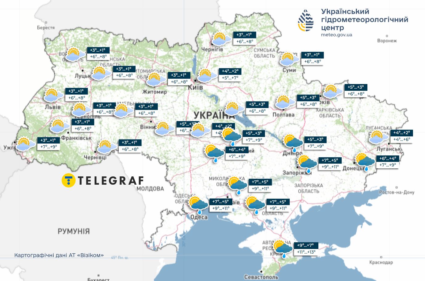 - З 1 по 3 грудня температура вдень утримається на рівні +5…+8 °C