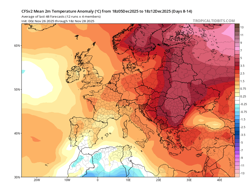 Температура залишатиметься аномально високою для цієї пори року. З 1 по 4 грудня вночі прогнозують -3…+4 °С, на півдні 0…+7 °С, вдень +3…+9 °С, на півдні та в Криму до +12 °С. У Карпатах вночі близько -1…-6 °С, вдень -2…+3 °С.