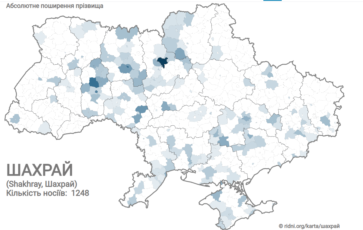 Власники прізвища Шахрай мешкають чи не по всій країні. На карті видно, що зустріти їх можна у багатьох областях.