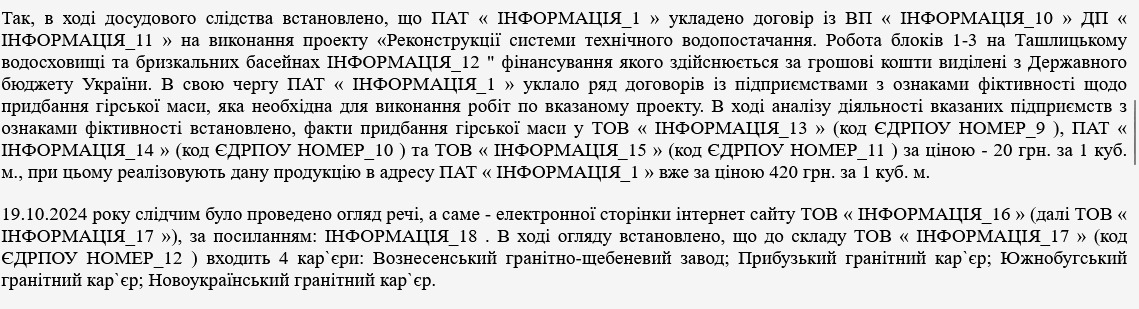 - реальний товар постачали афілійовані підприємства групи "Корпорація бугські кар’єри".