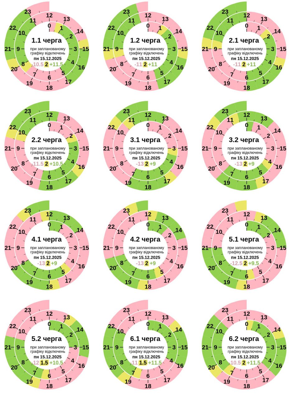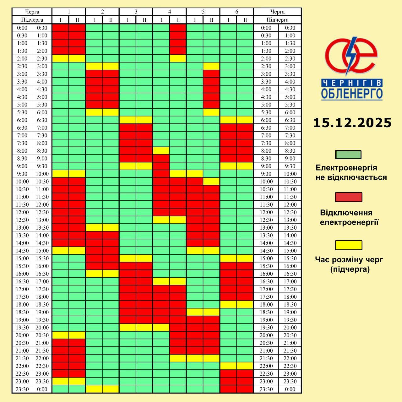 Графік відключення світла у Кропивницькому та Кіровоградській області 15.12.2025