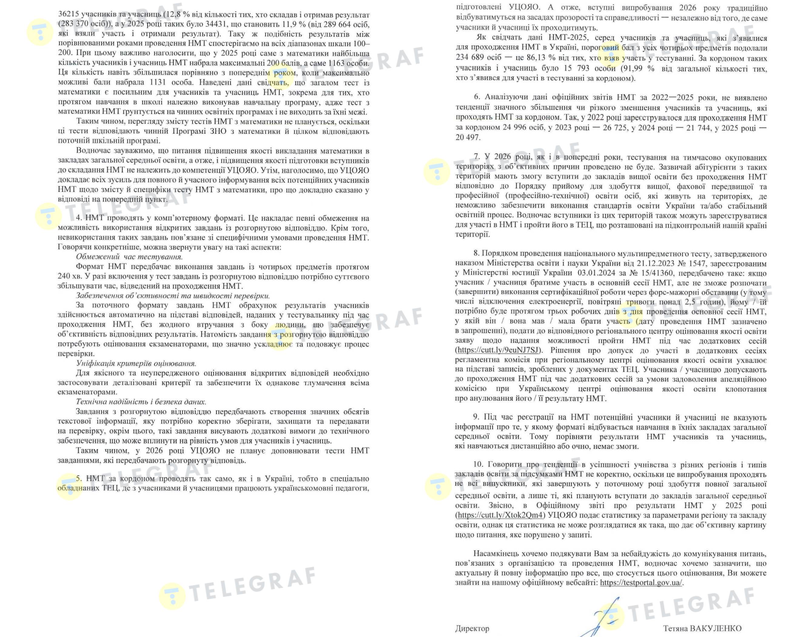 - За поточного формату завдань НМТ обрахунок результатів учасників здійснюється автоматично… без жодного втручання з боку людини, що забезпечує об'єктивність відповідних результатів. Натомість завдання з розгорнутою відповіддю потребують оцінювання екзаменаторами, що значно ускладнює та подовжує процес перевірки, – відзначає Вакуленко.