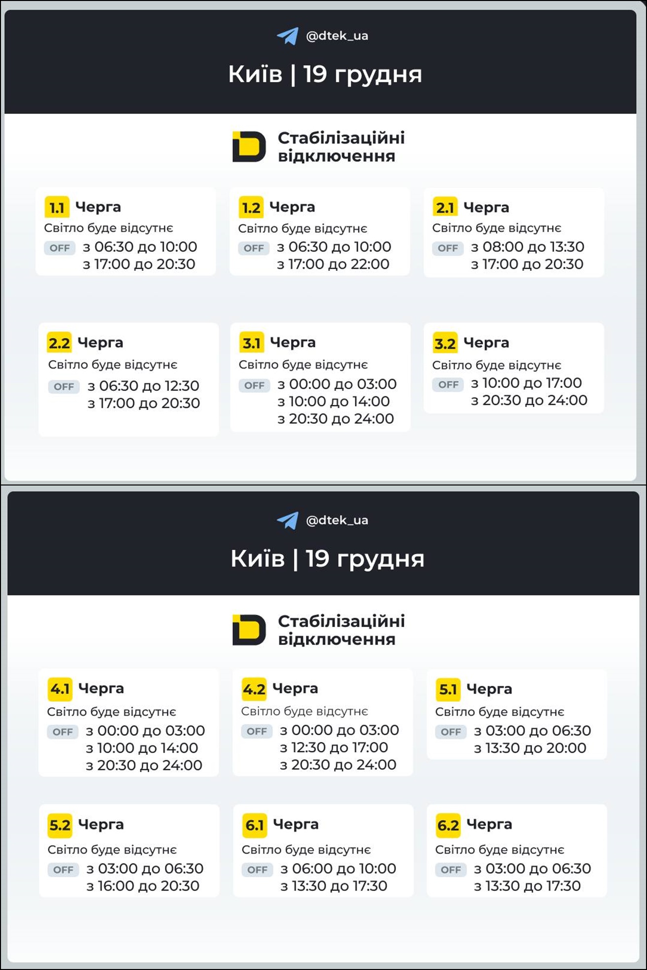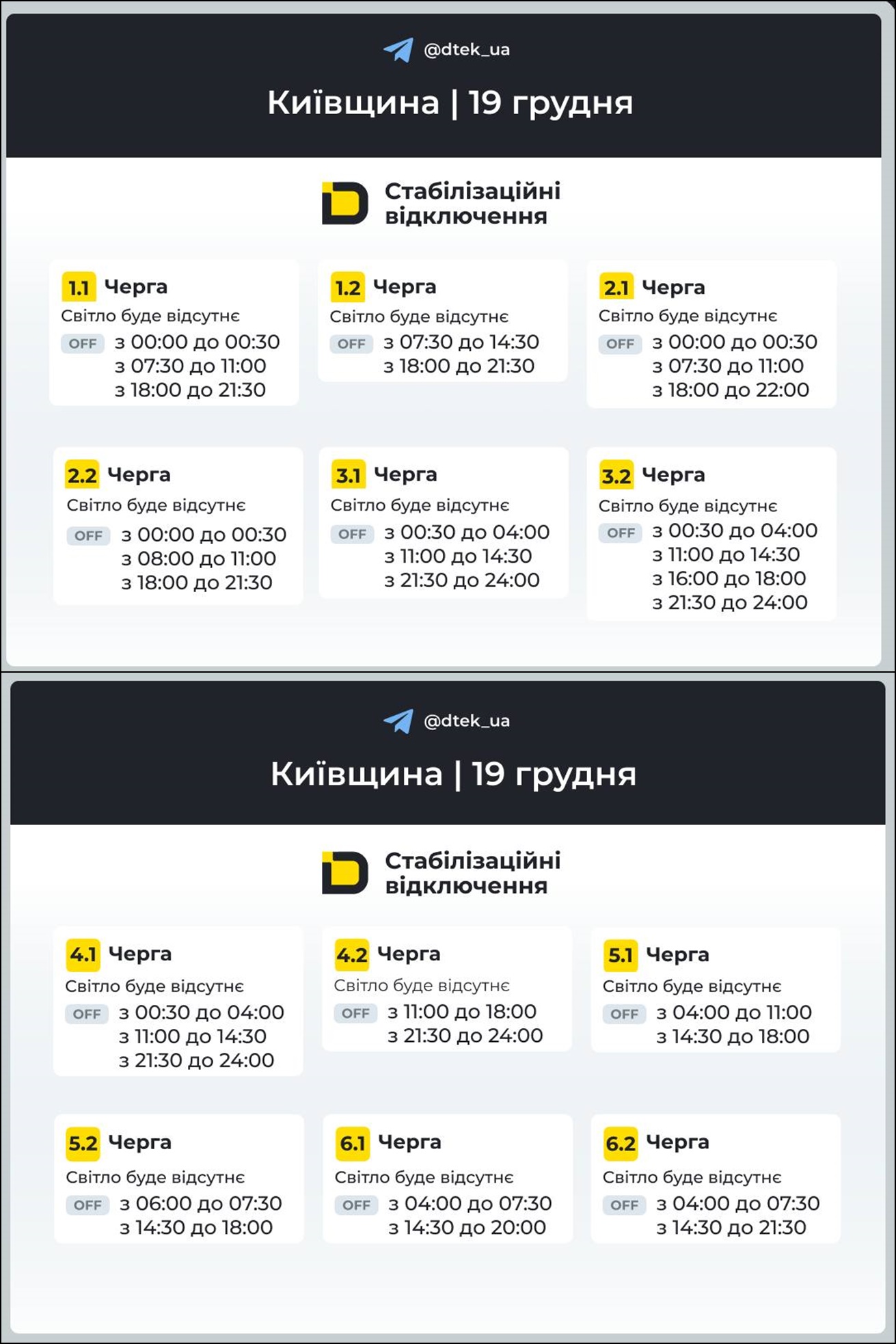 До шести відключень на добу. Які графіки діють у всіх регіонах України 19 грудня