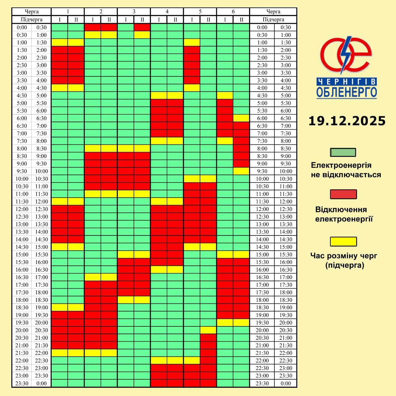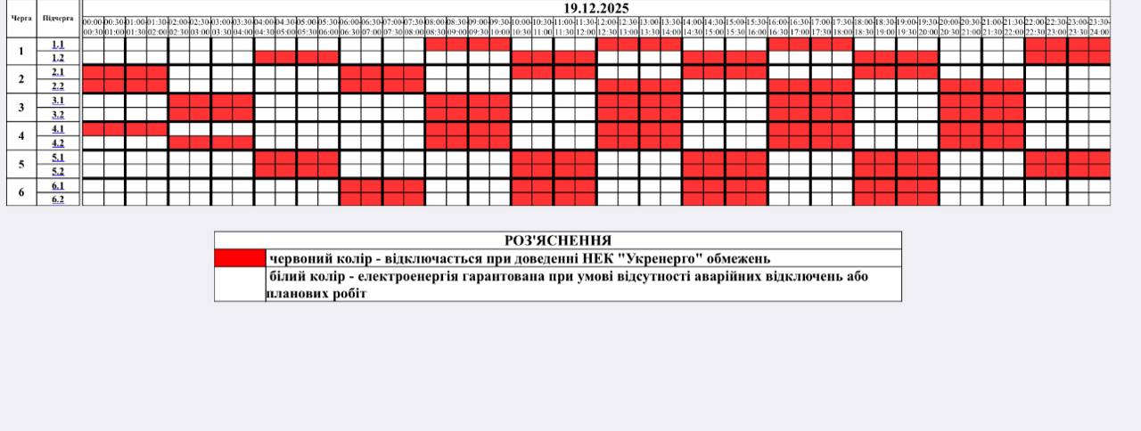 Графік відключення світла у Кропивницькому та Кіровоградській області 19.12.2025