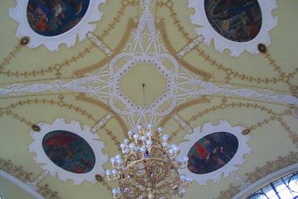 Також у залі є плафони "Перемога" та зображення заводу, схожого на Харківський турбінний. Їх пов’язують з Євгеном Лансере-молодшим.