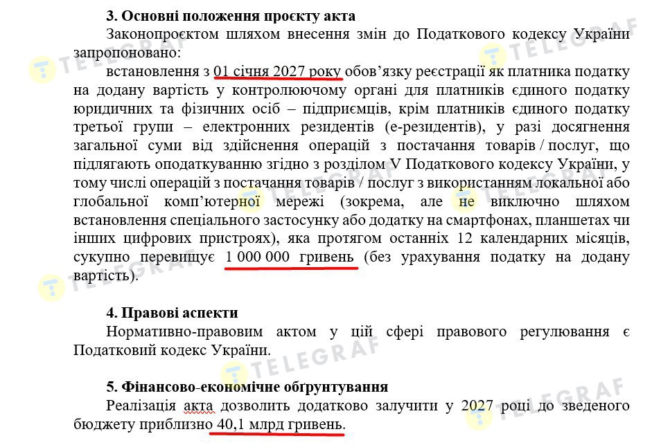 Згідно з документом, з 1 січня 2027 року ФОПи, чий річний оборот перевищить мільйон гривень, зобов'язані реєструватися платниками податку на додану вартість. На перший погляд це звучить як технічна зміна в податковому законодавстві, але експерти б'ють на сполох.