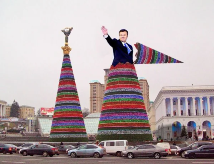 Вночі 3 грудня працівники МВС оточили площу, а комунальники почали розбирати намети. Через кілька днів глава держави Віктор Янукович коментував події, але не зміг одразу згадати назву новорічного дерева. Десять секунд паузи закінчилися словом "йолка", що стало приводом для жартів.
