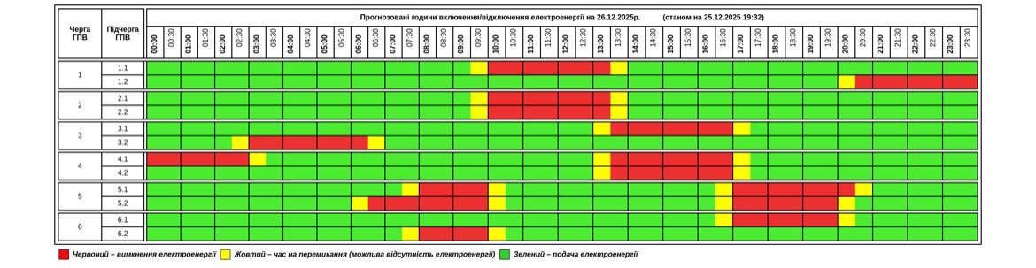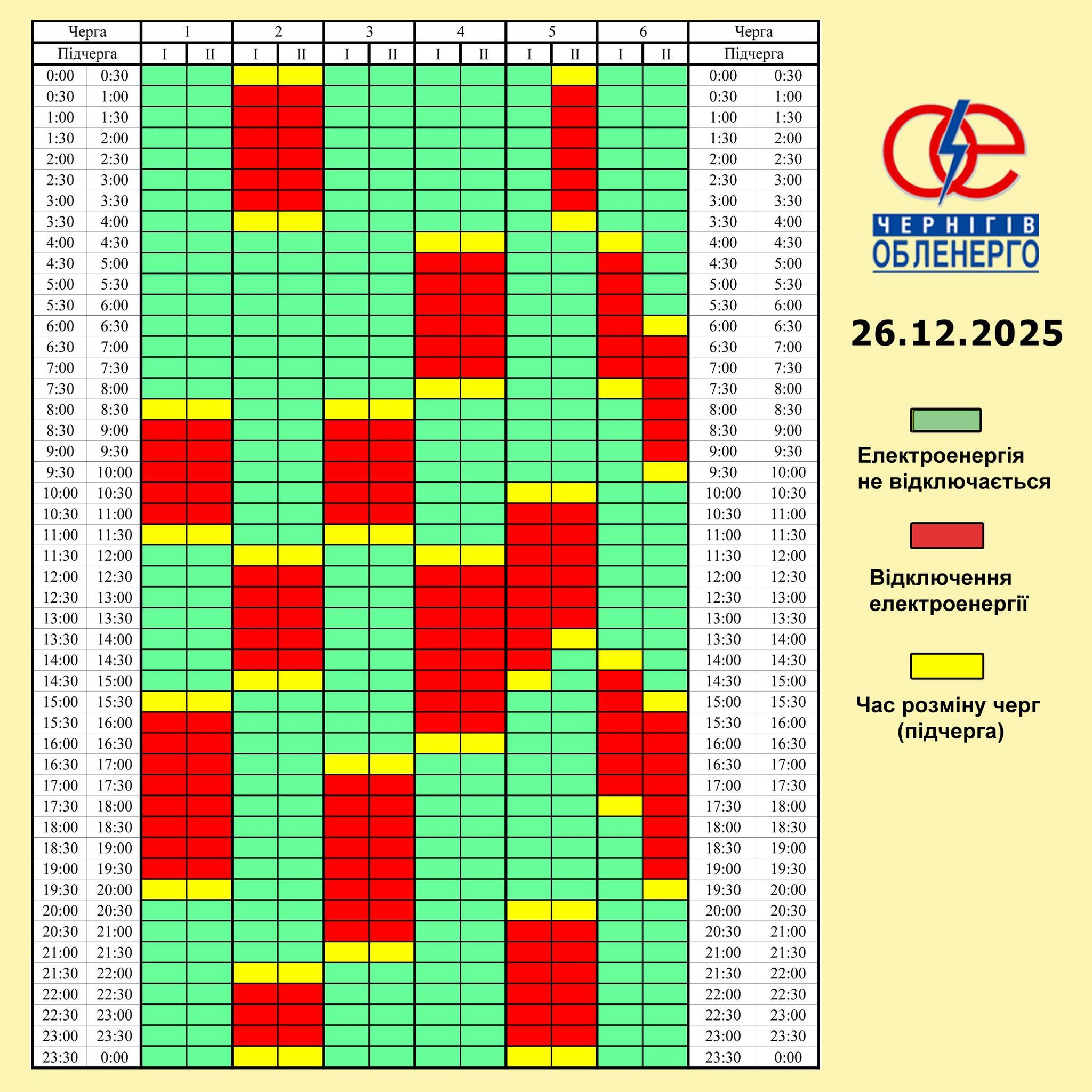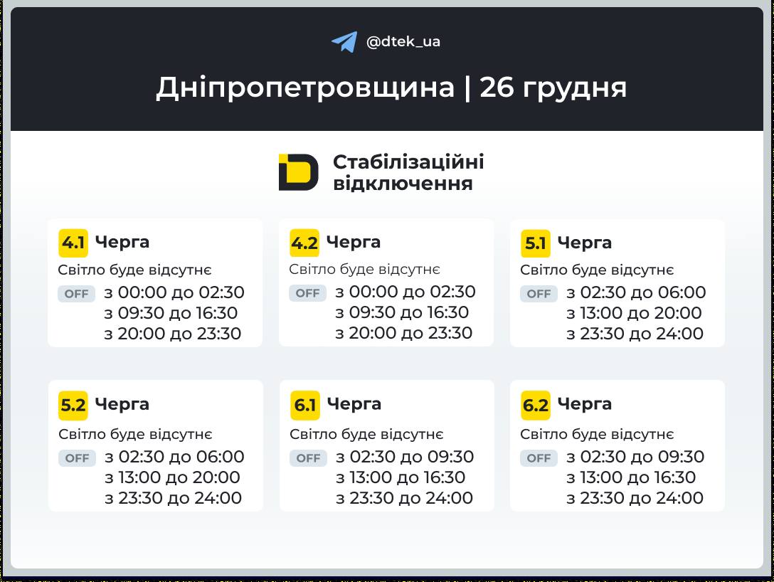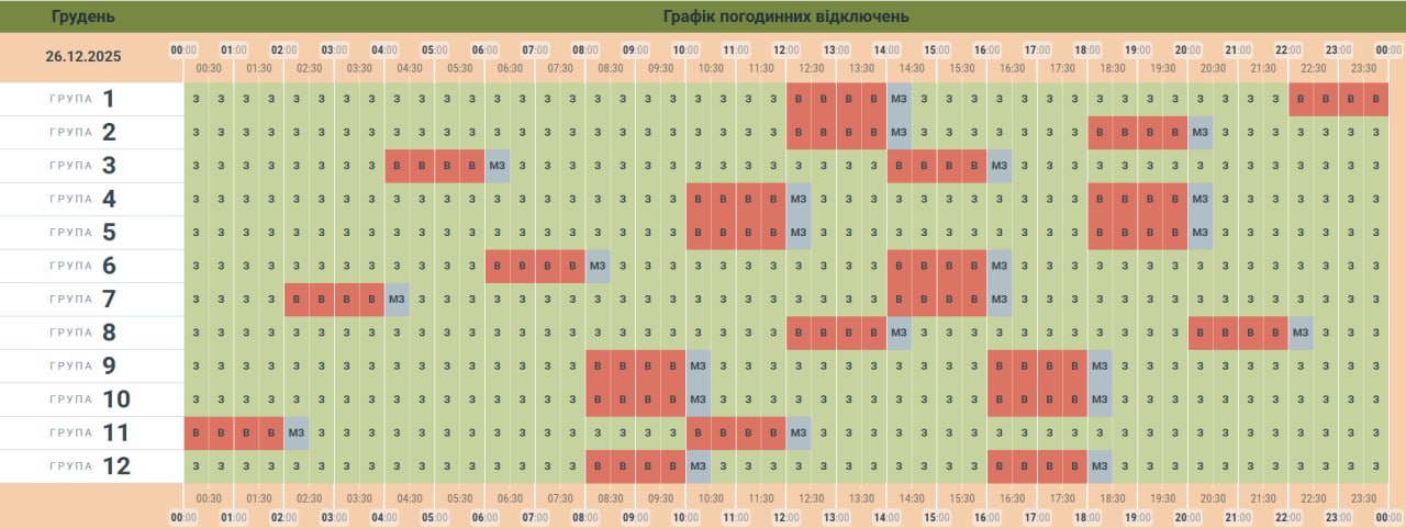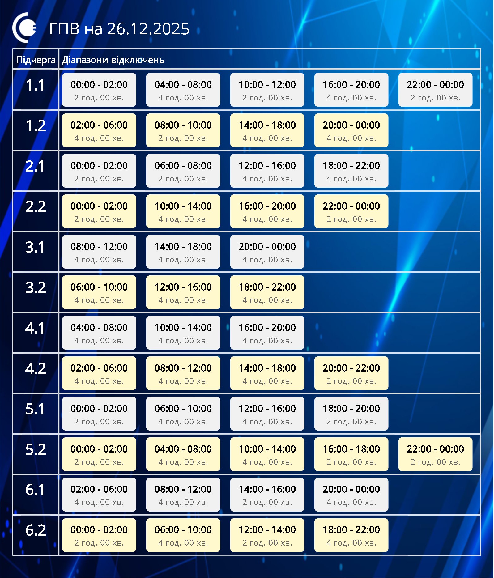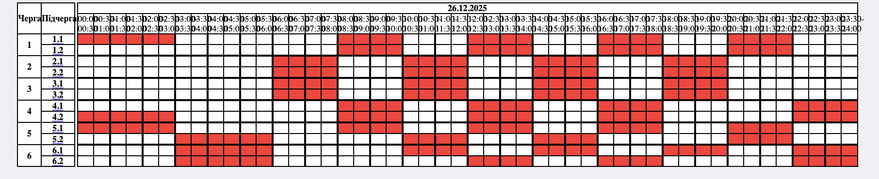 Понад 12 годин без світла. Які графіки відключень заплановані на 26 грудня