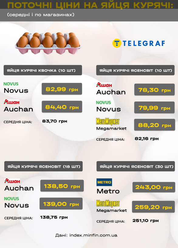 Про це "Телеграфу" сказала заступник комерційного директора компанії "Агро-Рось" Наталія Сайковська у матеріалі: "Як зміняться ціни на яйця перед Новим роком (інфографіка)".
