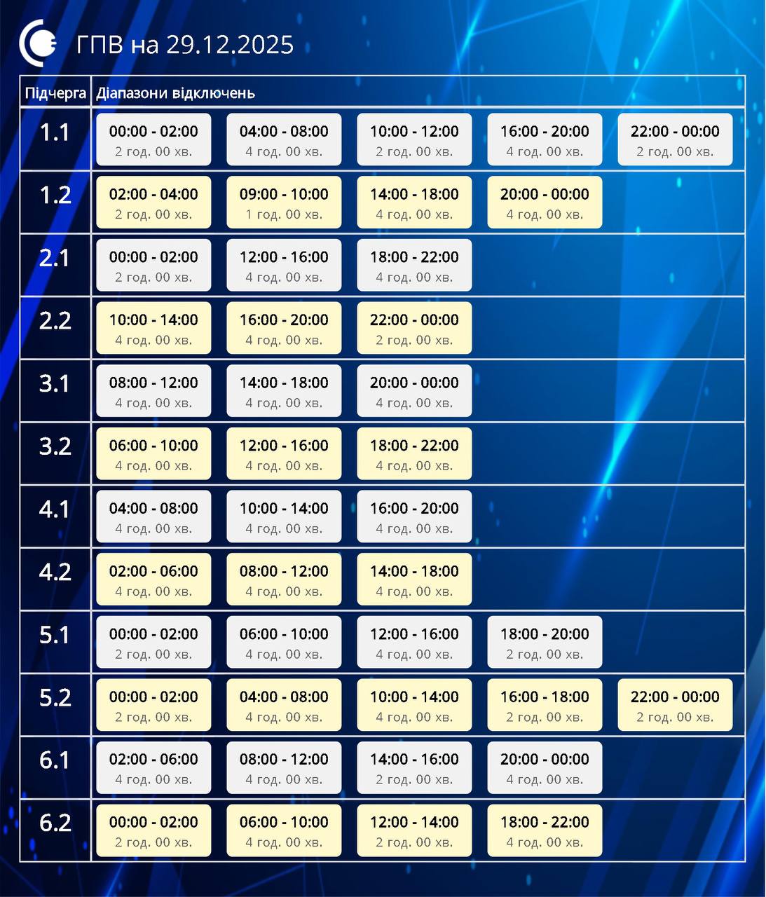 Без відключень всього кілька областей. Які графіки у всіх регіонах України 29 грудня