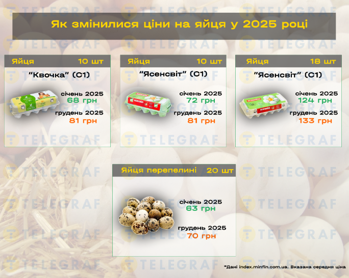 Яйця 6 штук – 99 гривень (1,99 євро). Десяток яєць коштуватиме 148 гривень (2,99 євро).