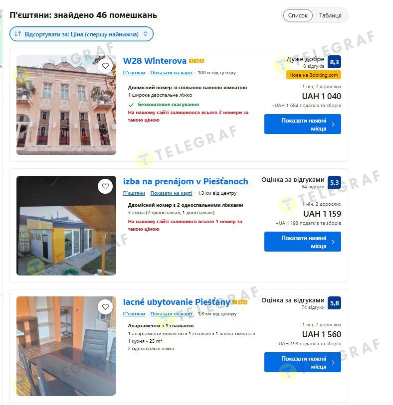 Пієштяни – це не розважальний комплекс, а серйозний бальнеологічний курорт з унікальним лікувальним болотом. Сюди їдуть лікувати суглоби та хребет. Санаторні пакети з проживанням, харчуванням та процедурами коштують від 73 євро на людину за ніч у бюджетних готелях і до 210 євро в люксових.