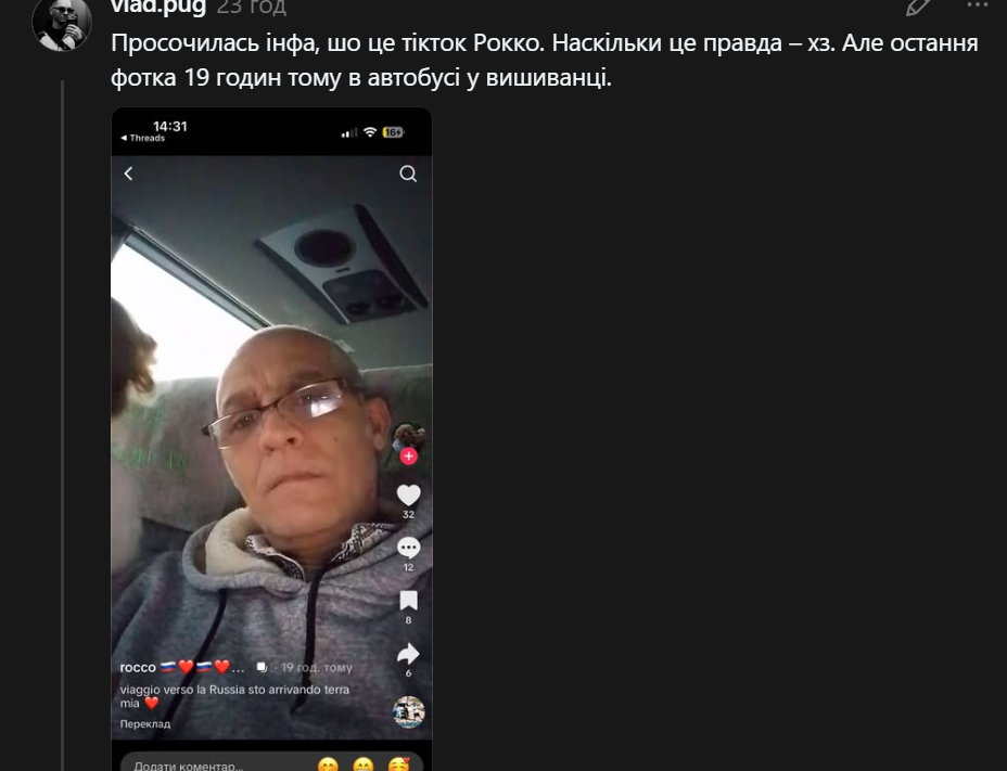 Італієць на ім’я Рокко Кантаро, який ображав Україну та вихваляв Росію, буквально став "зіркою" в мережі. Його не впустили на територію України на кордоні та у соцмережах швидко підхопили ситуацію, створивши велику кількість жартів із цього приводу.
