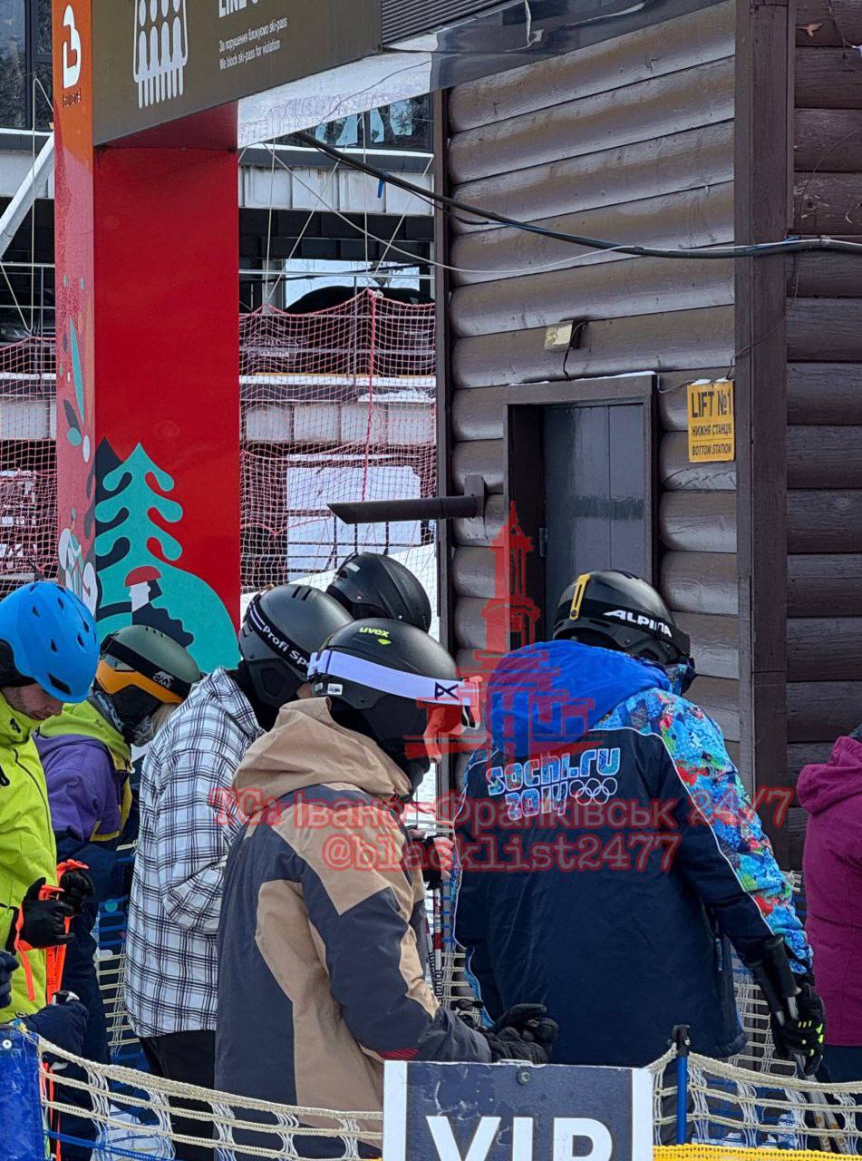 На ролику видно, як чоловік стоїть у VIР-зоні до лижних трас в куртці з написом "Сочі 2014". Щоправда, слова написані англійської та зроблені так, що їх важко прочитати з першого разу. Однак такий одяг на українському курорті викликає чимало питань.