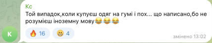 - Той випадок, коли купуєш одяг на гумі і пох… що написано, бо не розумієш іноземну мову.