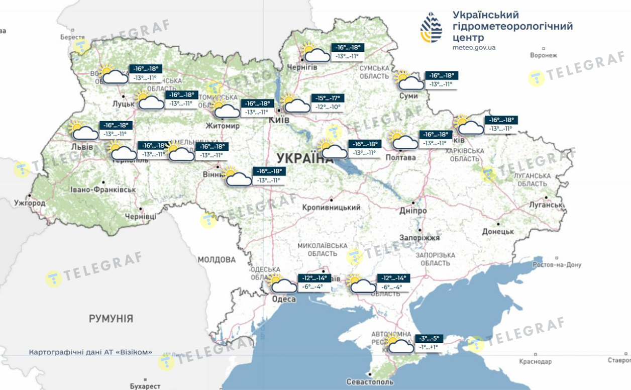 Після цього температура продовжить повільно підвищуватися. 16 та 17 січня вночі прогнозують -3…-10 градусів, а вдень близько 0…-5. Опадів буде небагато, проте ожеледиця на дорогах залишатиметься.