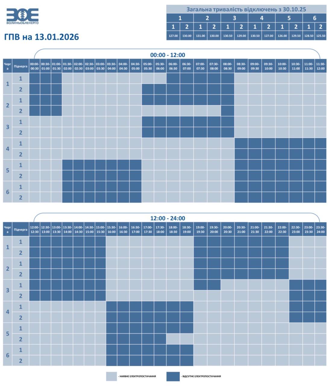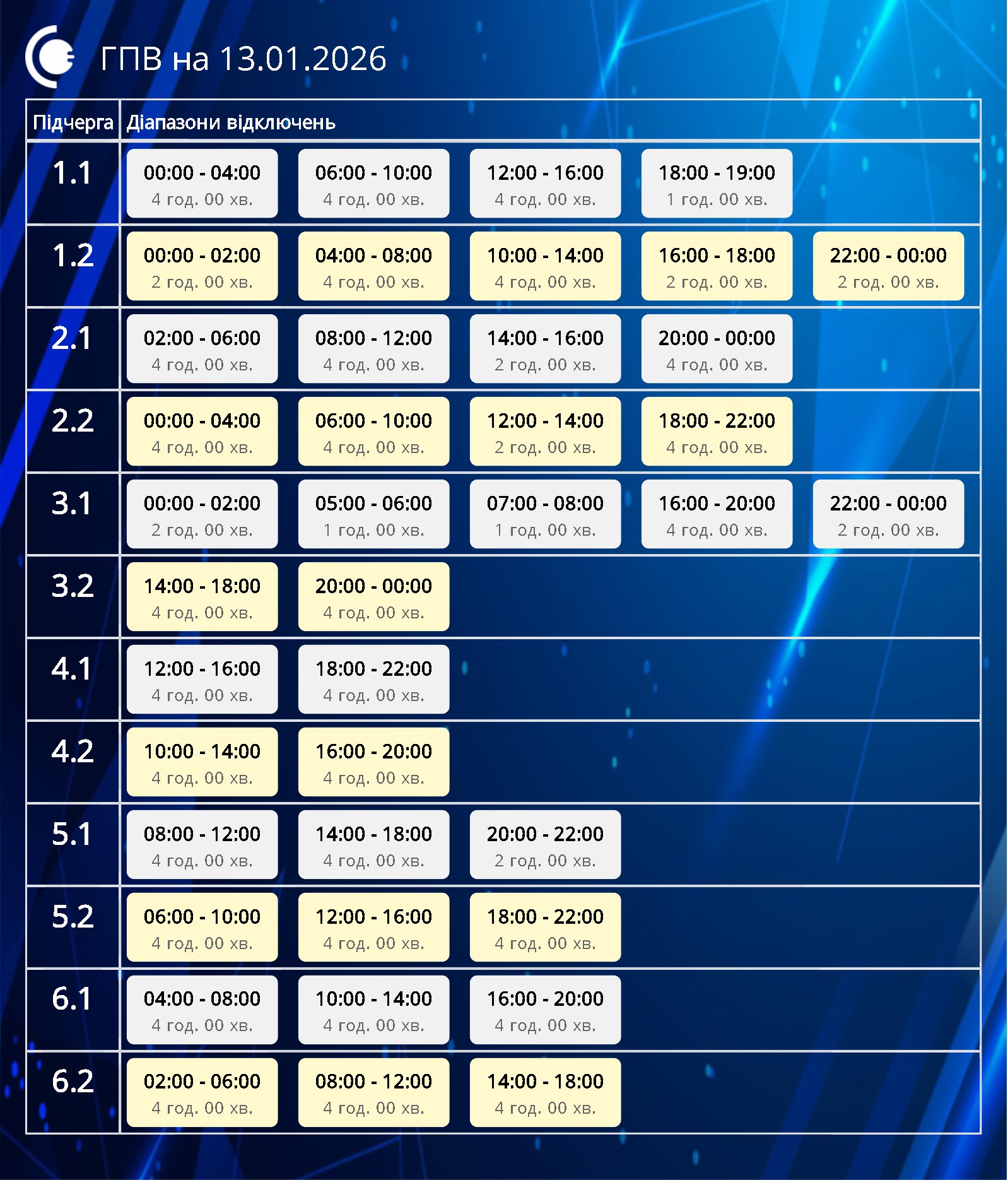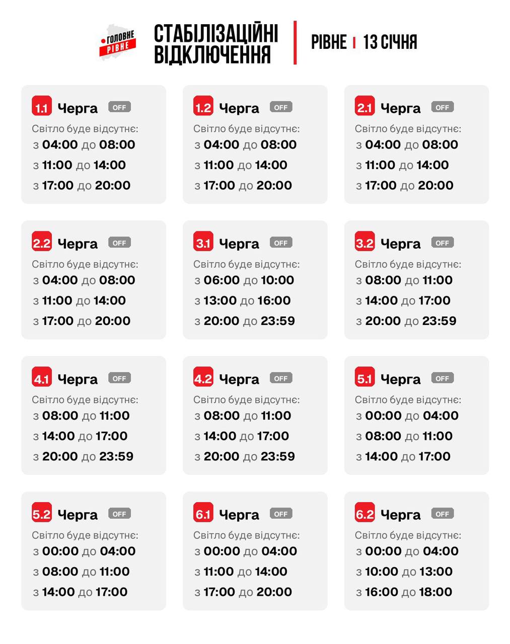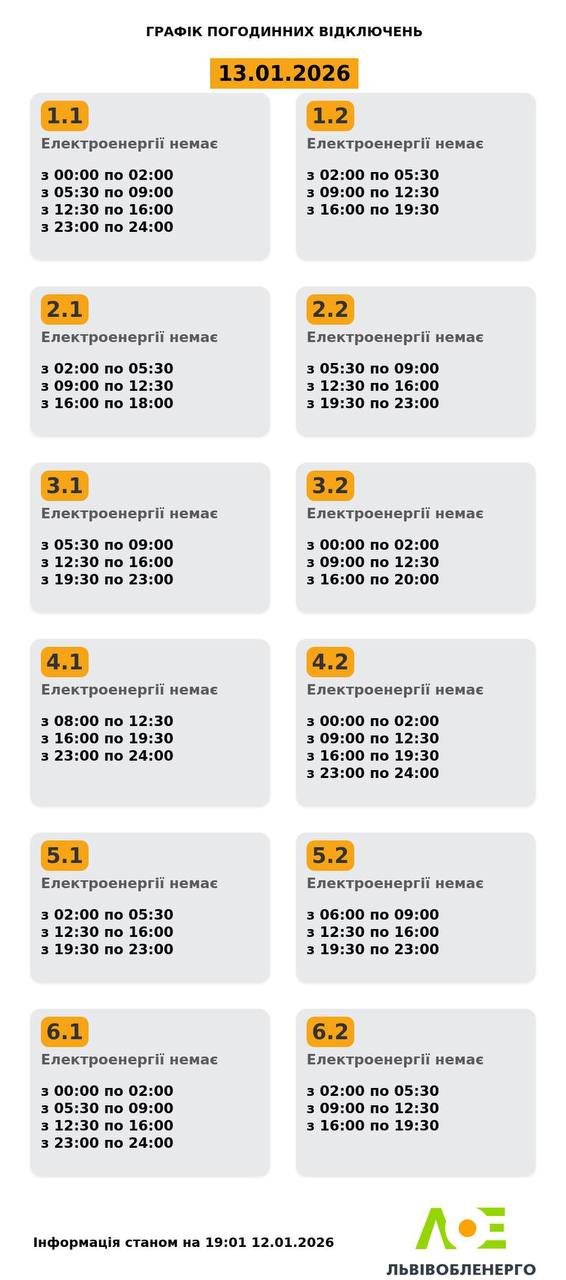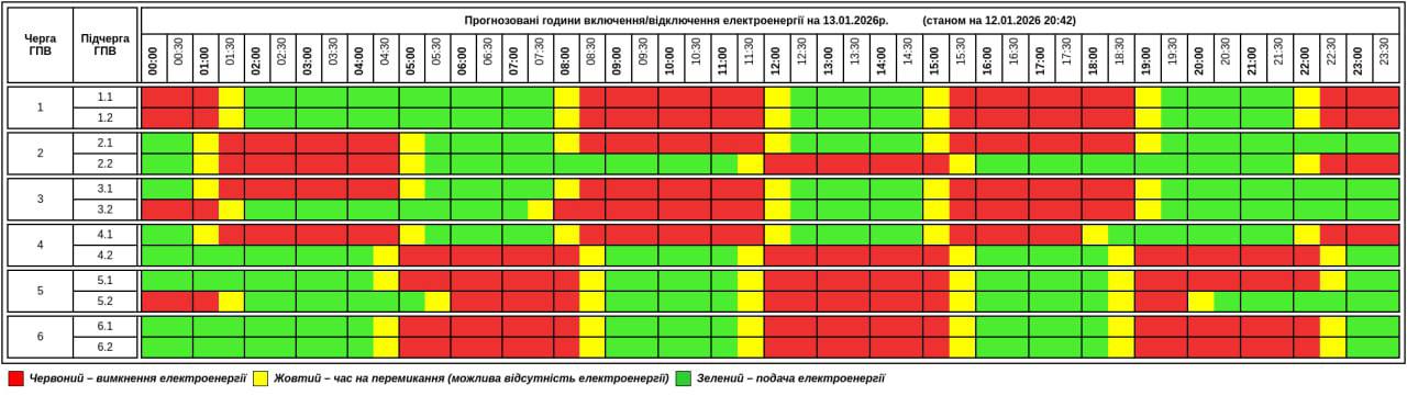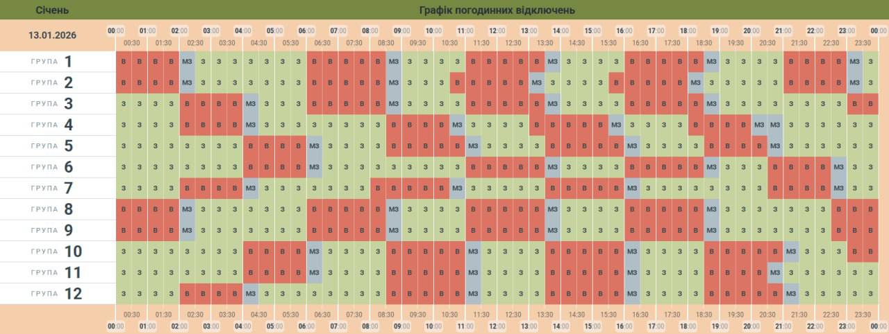 До шести відключень на добу. Які графіки діють по Україні 13 січня