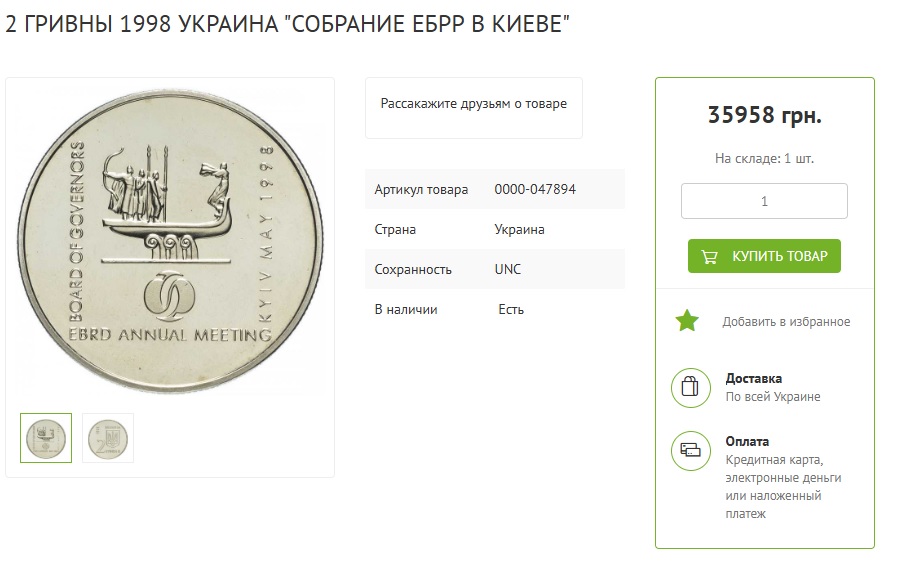 Ця монета високо цінується серед колекціонерів. На різних нумізматичних сайтах такі продають від 11 до 35 тисяч гривень.