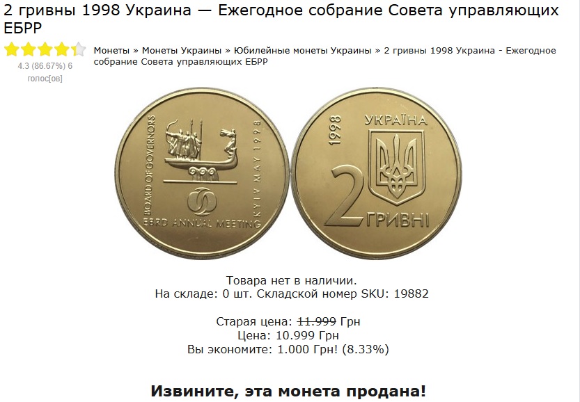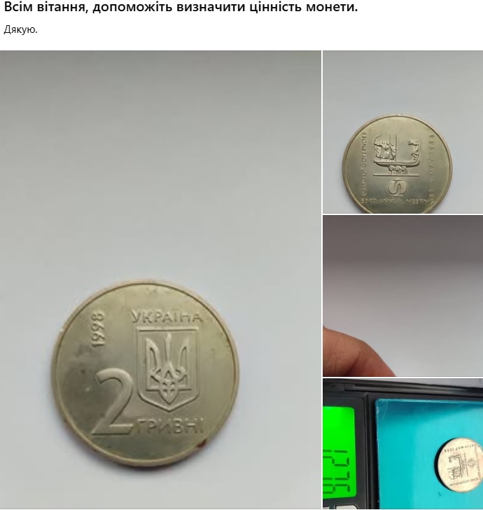 У своєму пості автор попросив коментаторів оцінити його монету. Йдеться про колекційну двогривневу монету, присвячену щорічним зборам Ради управляючих ЄБРР. Випустили її у1998 році.