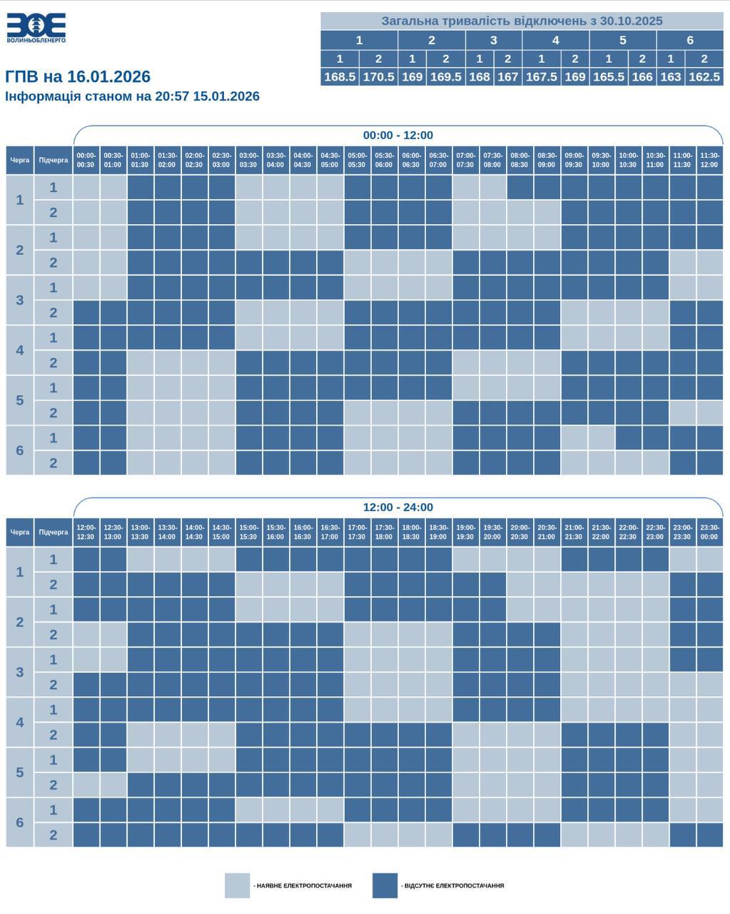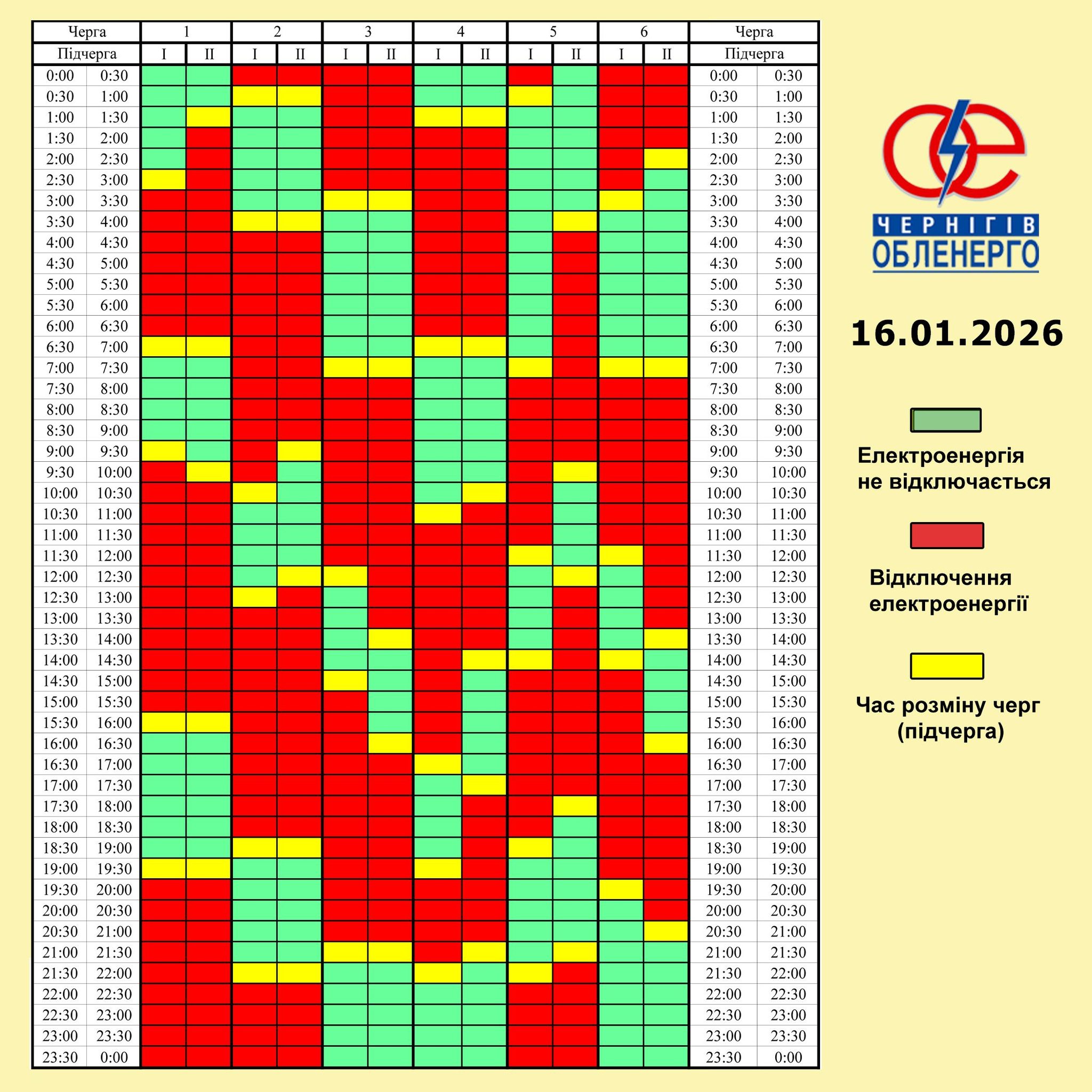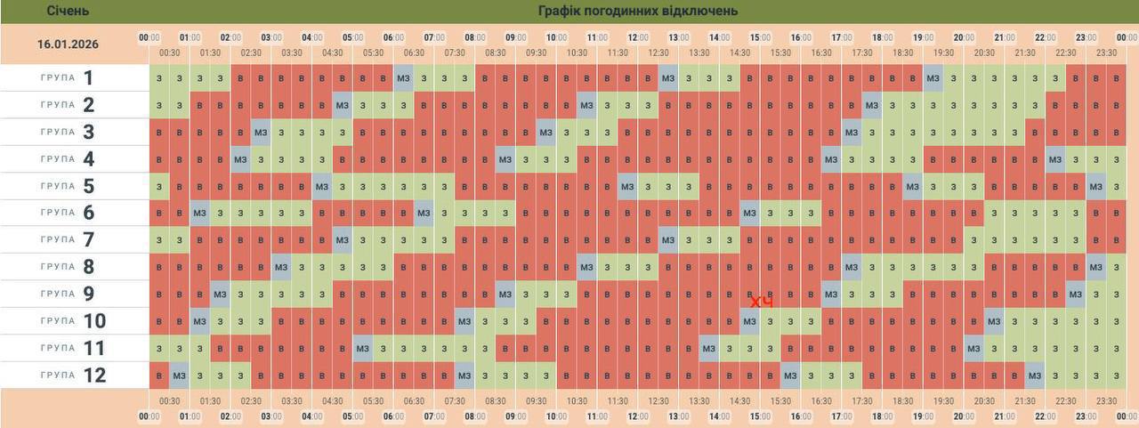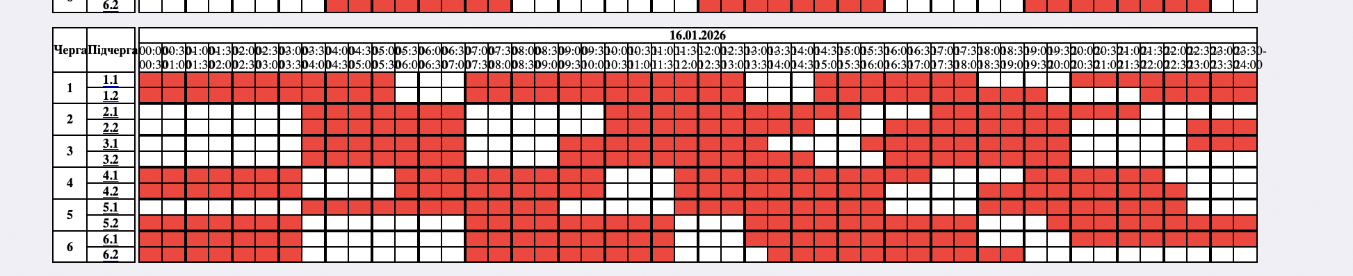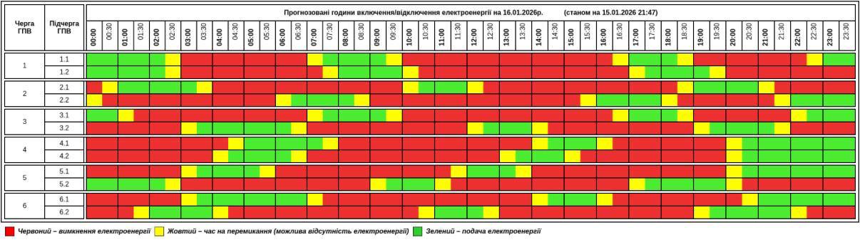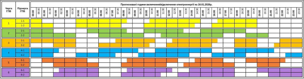 Світло буде менше 10 годин. Графіки відключень на 16 січня