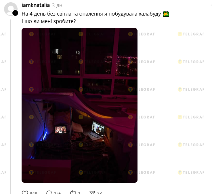Через проблеми з опаленням у Києві та низці інших регіонів після ударів Росії, українці повернулись до дитячого захоплення, щоб зігрітись. Мова про халабуди — свого роду шалаші чи будиночки з підручних матеріалів.
