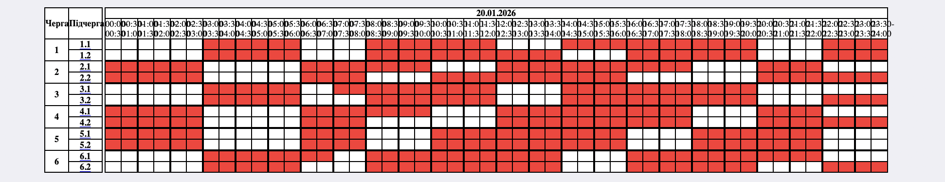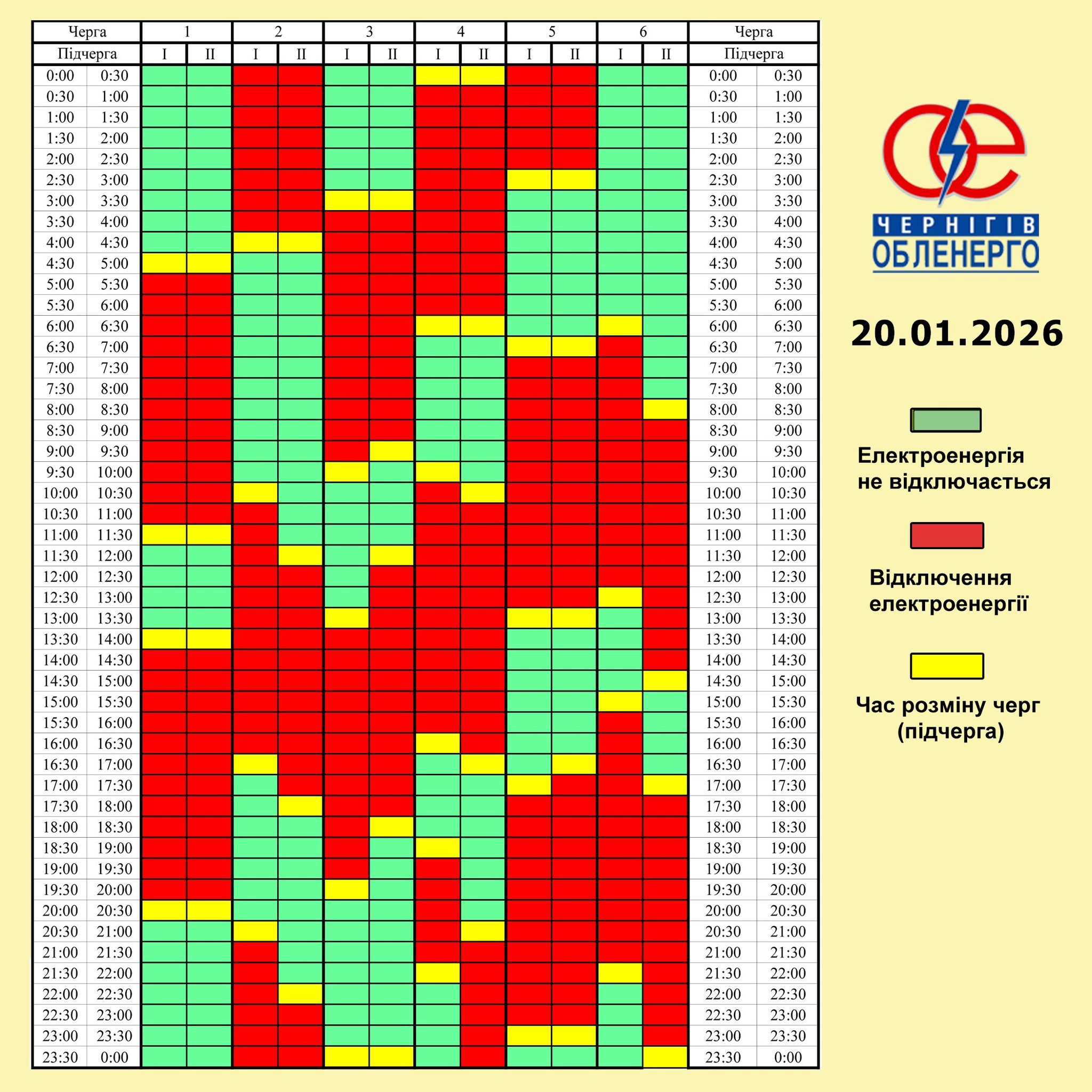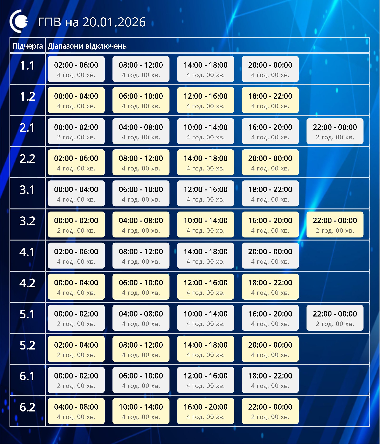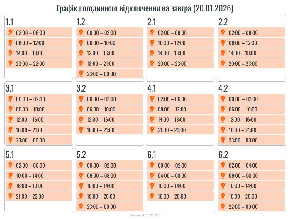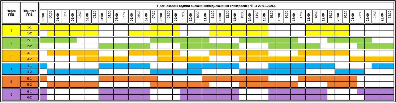 До шести черг одночасно. Які графіки відключень заплановані на 20 січня