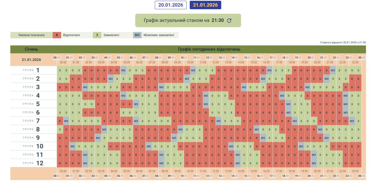 Жорсткі обмеження, але не для всіх. Графіки відключень на 21 січня