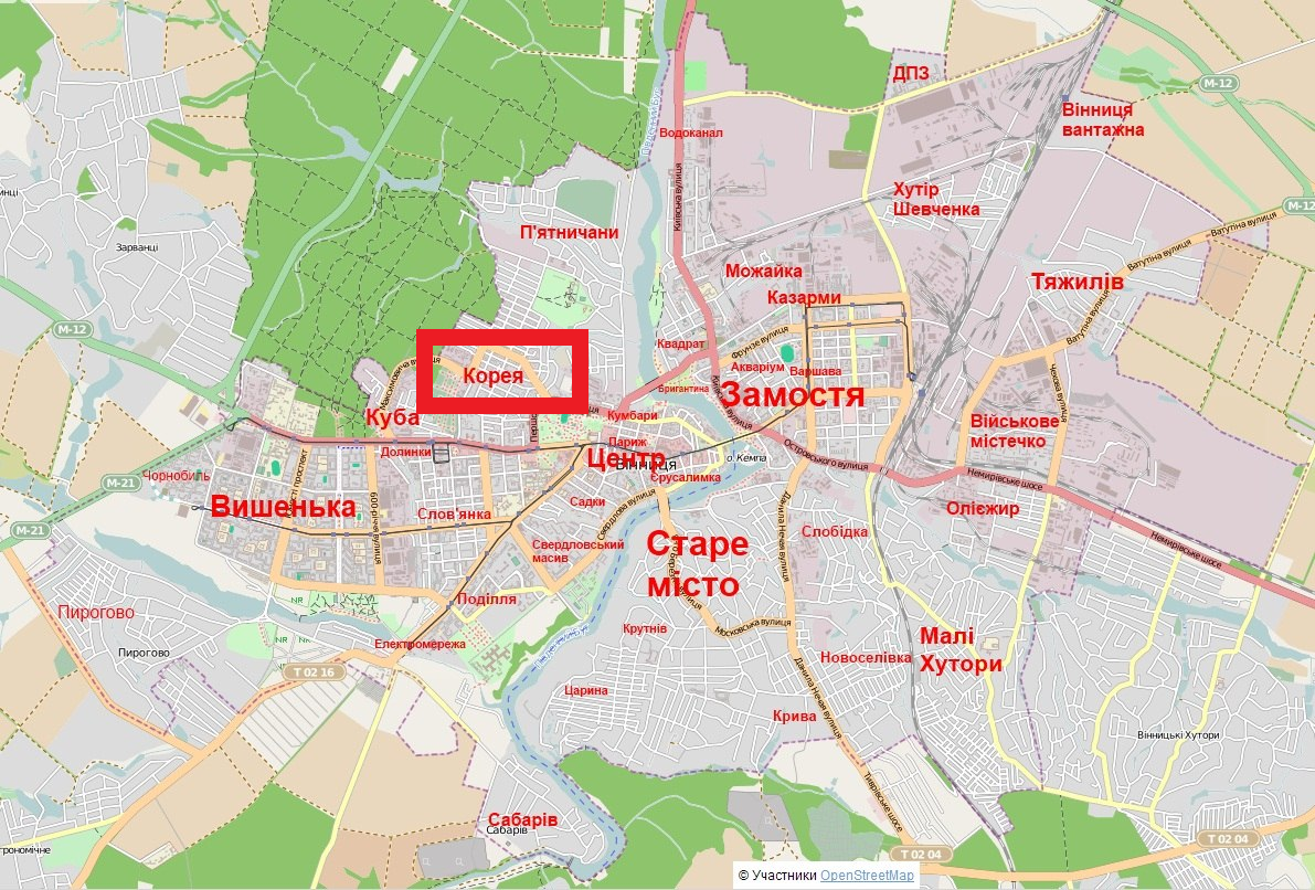 У Вінниці є мікрорайон з незвичайною назвою — Корея. Він розташований недалеко від центру та поєднує стару забудову із сучасними житловими комплексами.
