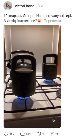 "12 квартал. Дніпро. На відео чавунні гирі.А як зігріваєтесь ви?", — пише автор посту.