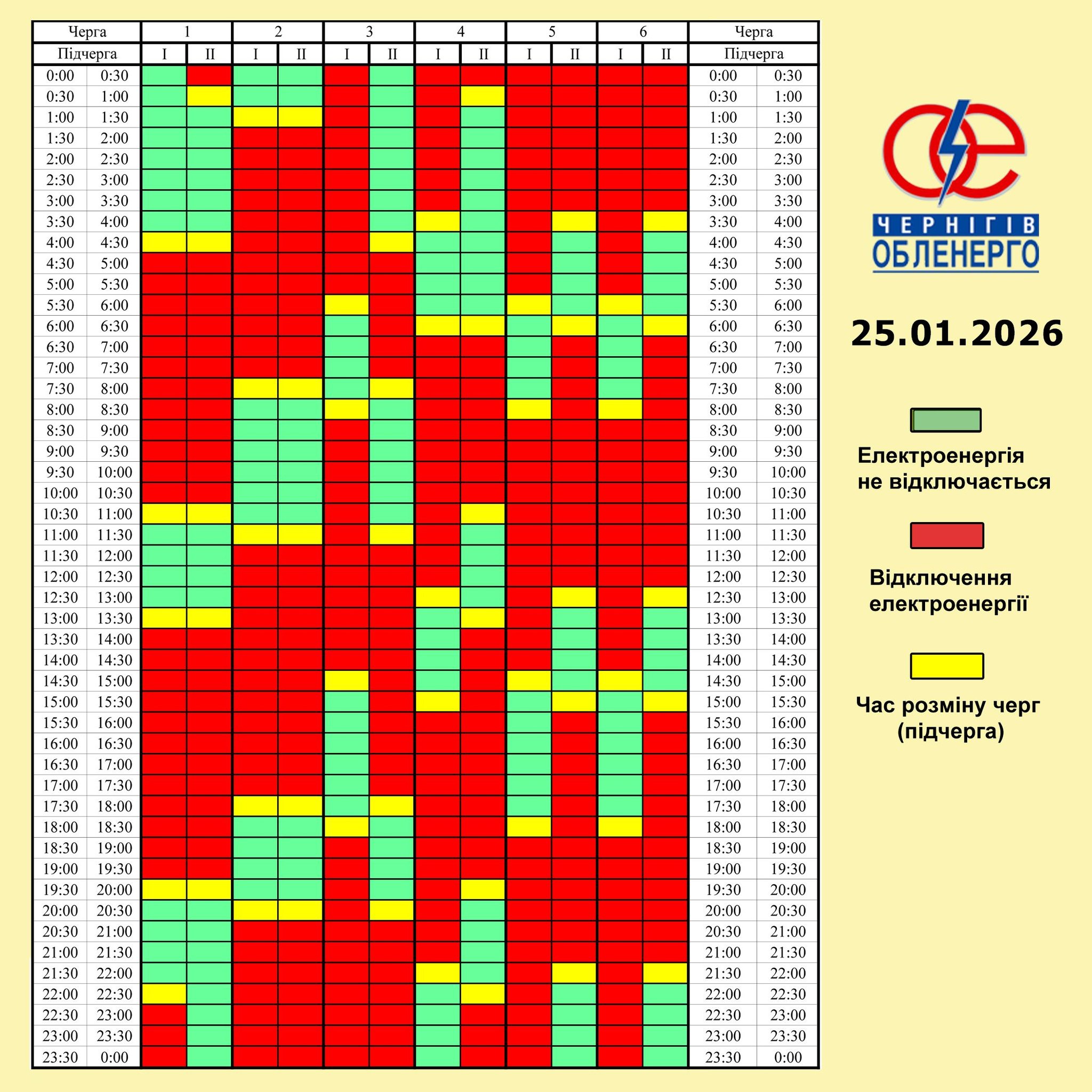 Графіки відключень у Чернігівській області 25 січня