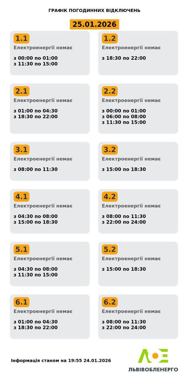 Графіки відключень у Львівській області 25 січня