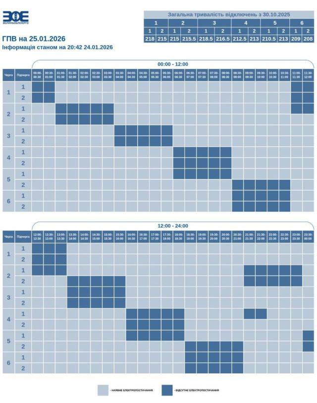 Графіки відключень у Волинській області 25 січня