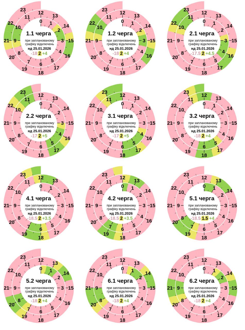 Графіки відключень у Запорізькій області 25 січня