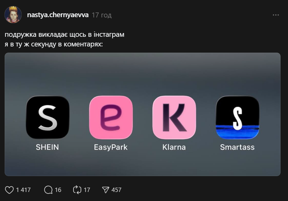 Користувачі Threads запустили новий креативний тренд – складати слова, використовуючи букви з іконок додатків на смартфоні. Популярні українські компанії теж вирішили не стояти осторонь і вигадали свої креативні варіанти.