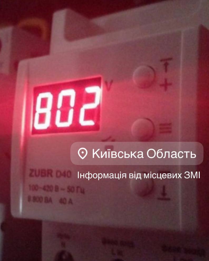 Як повідомляють місцеві канали, в Київській області напруга місцями сягає 802 В. Є квартири, де вона перетнула позначку в 300 одиниць. Зазначається, що така ситуація виникла після введення аварійних відключень.
