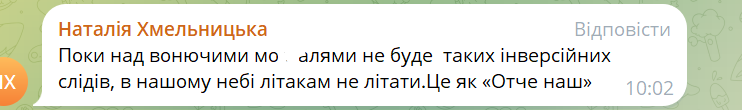 У коментарях під постом з фото та відео українці впевнені, що світ в Україні обов’язково настане, і тоді подібні сліди в небі будуть лише від пасажирських літаків.