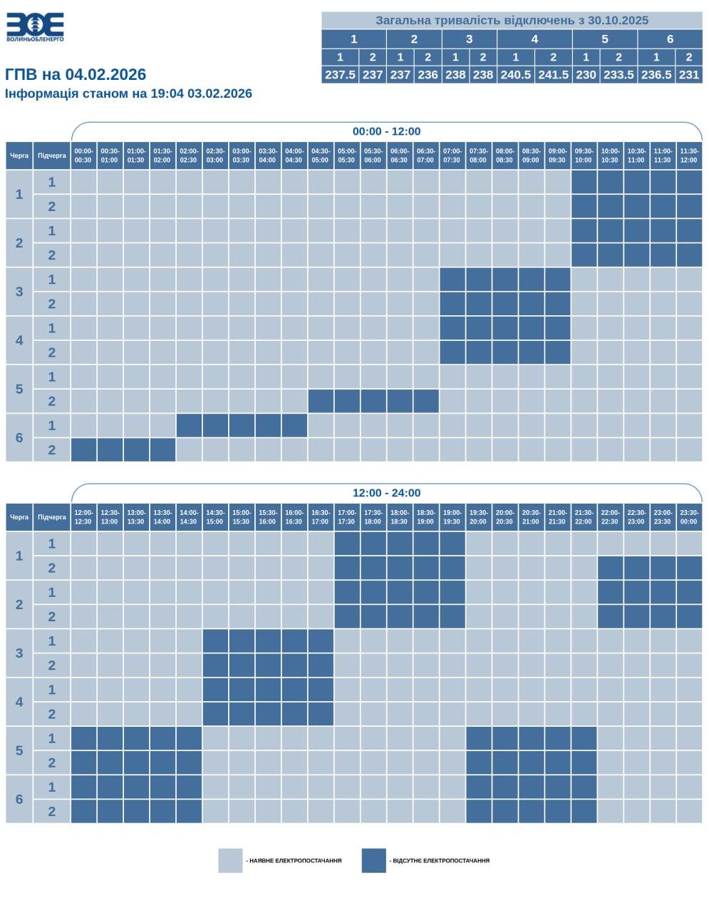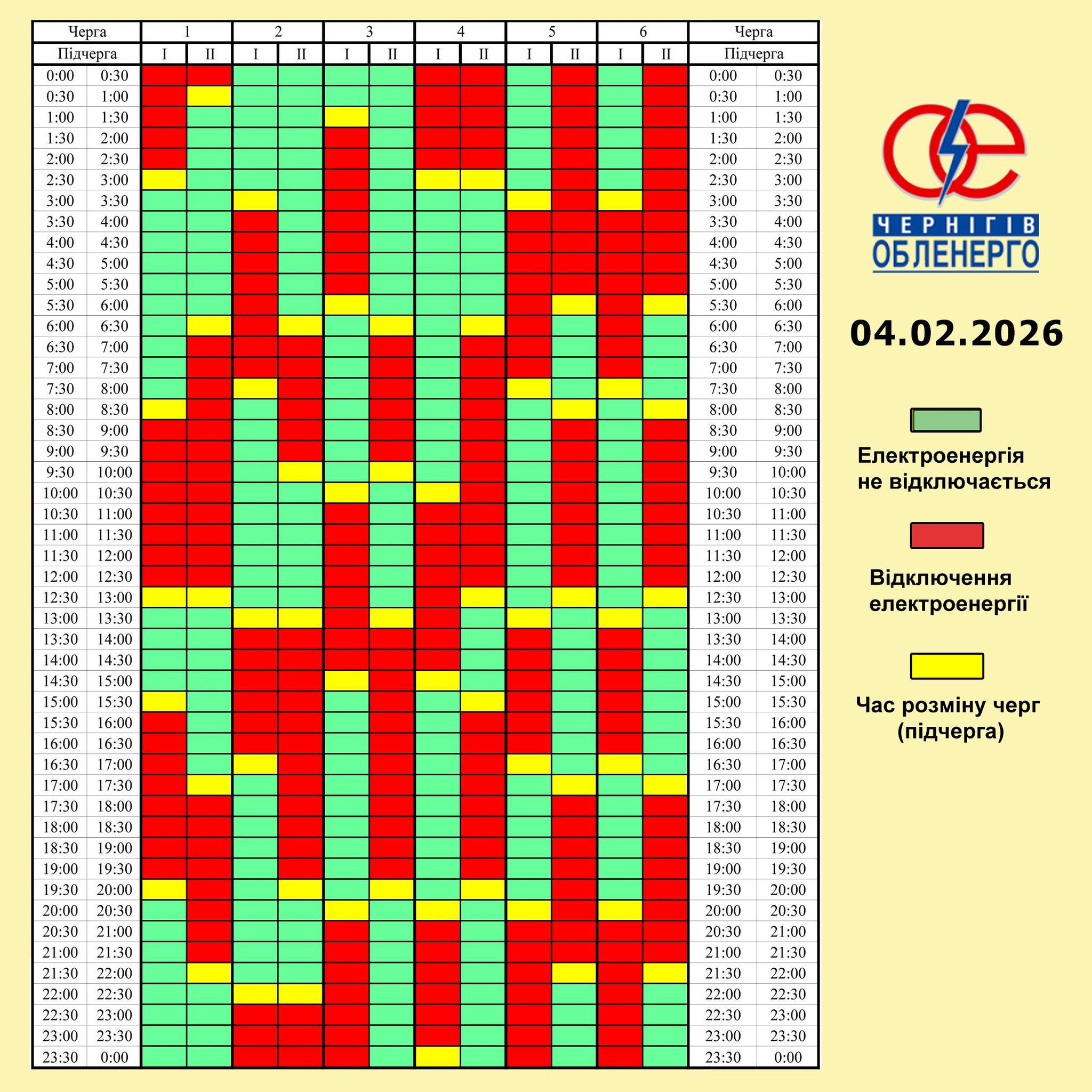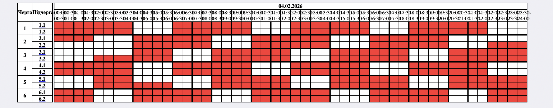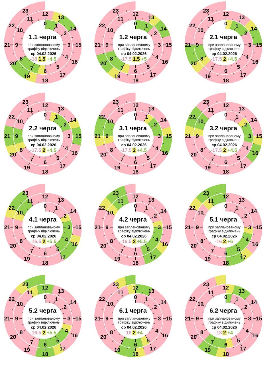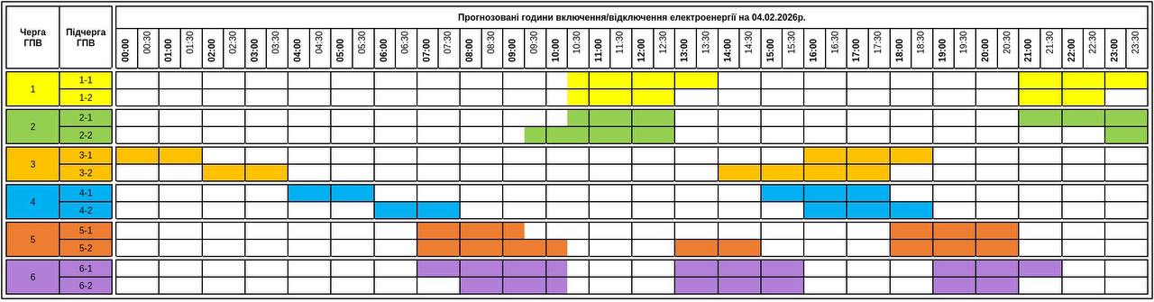 До 4 черг одночасно. Які графіки відключень заплановані на 4 лютого