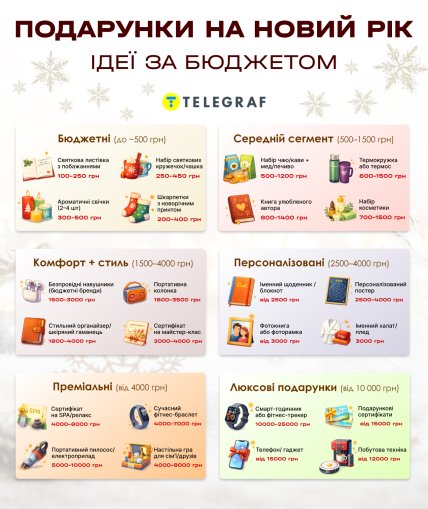 "Телеграф" розповідає, скільки коштують новорічні подарунки для різних категорій людей, як не розоритися на святах і водночас порадувати всіх близьких, а також ділиться секретами ефектної упаковки та найгарячішими трендами сезону.