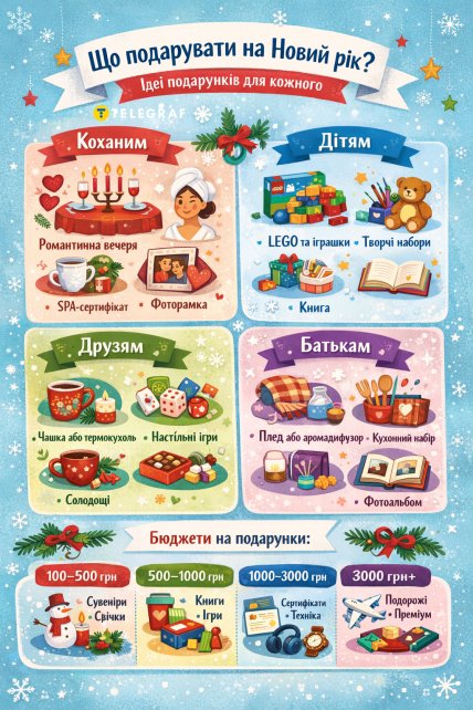 Що подарувати на Новий рік коханим, дітям, батькам і друзям: ціни та ідеї для новорічних подарунків (інфографіка)