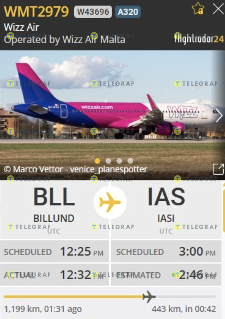 Йдеться про рейс W43696/A320, який прямував з Данії до Румунії. Вилетів борт о 13:32 з аеропорту Біллунда та приземлився о 16:46 у Ясси. За майже три години польоту радари зафіксували літак нібито над Україною. Однак фактично над нашою державою з 2022 року повітряний простір закрито, будь-які пасажирські чи інші цивільні польоти заборонені.