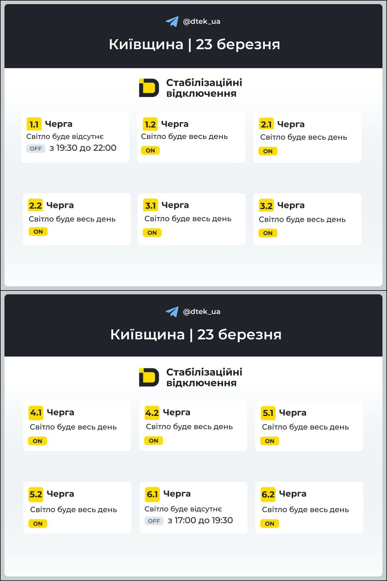 Як дізнатися свою чергу відключення у кожній області України, читайте у статті на "Телеграфі" за цим посиланням.