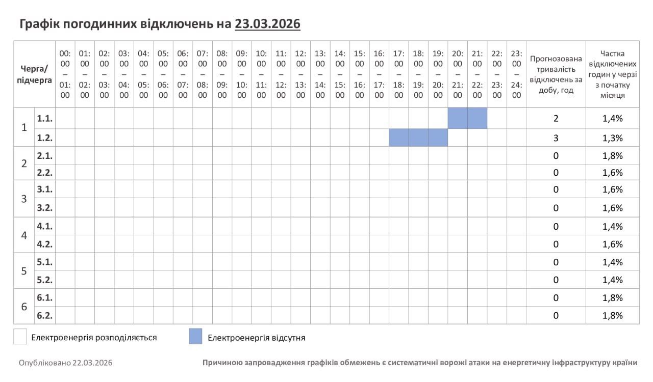 Відключення повертаються: які графіки діють в Україні 23 березня
