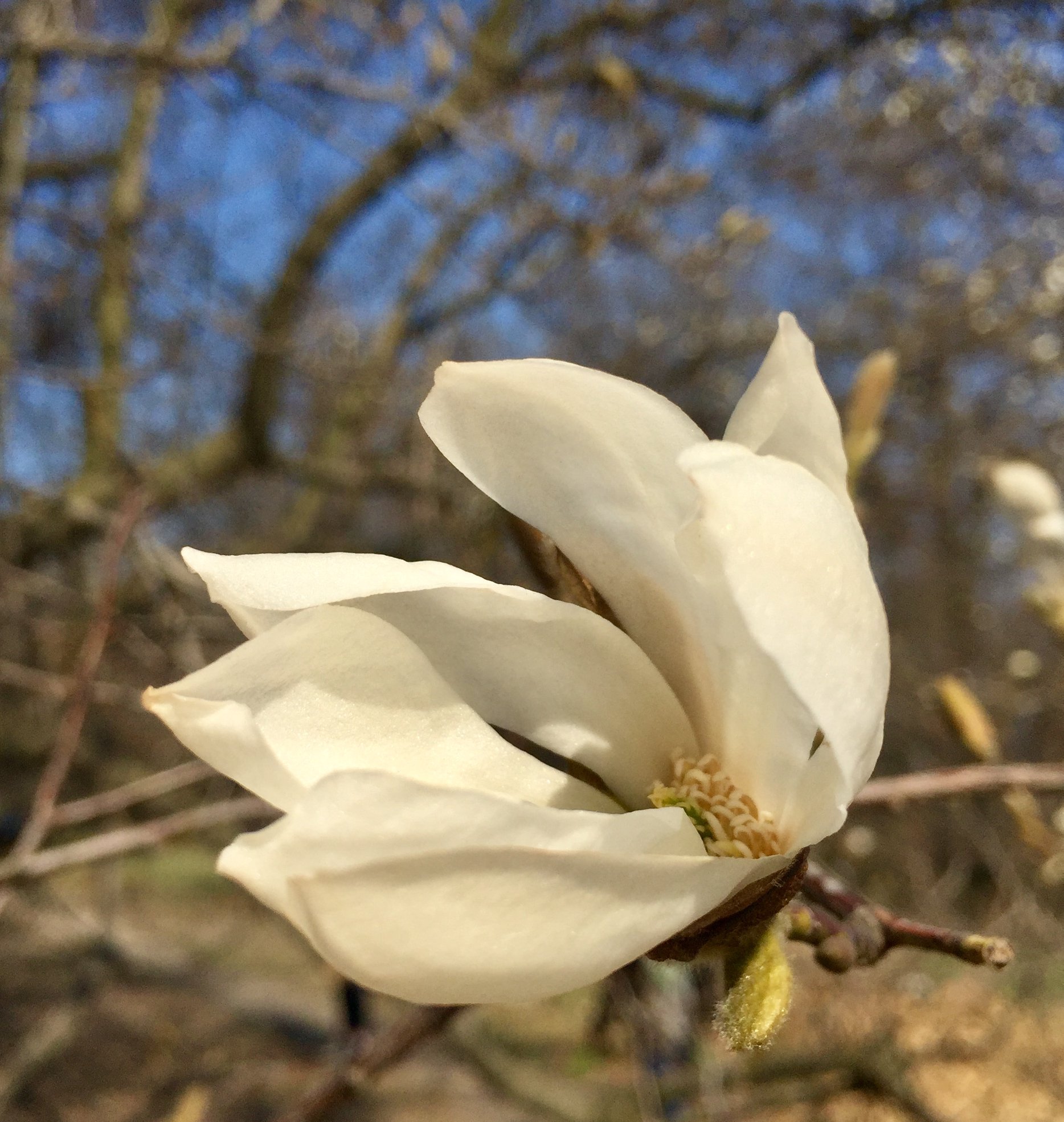 Ця магнолія у Саду муз належить до сорту суланжа і найімовірніше їй близько 100 років. Поруч — палац Ув'єри, тож тут можна зробити красиві фото зі шляхетним акцентом.