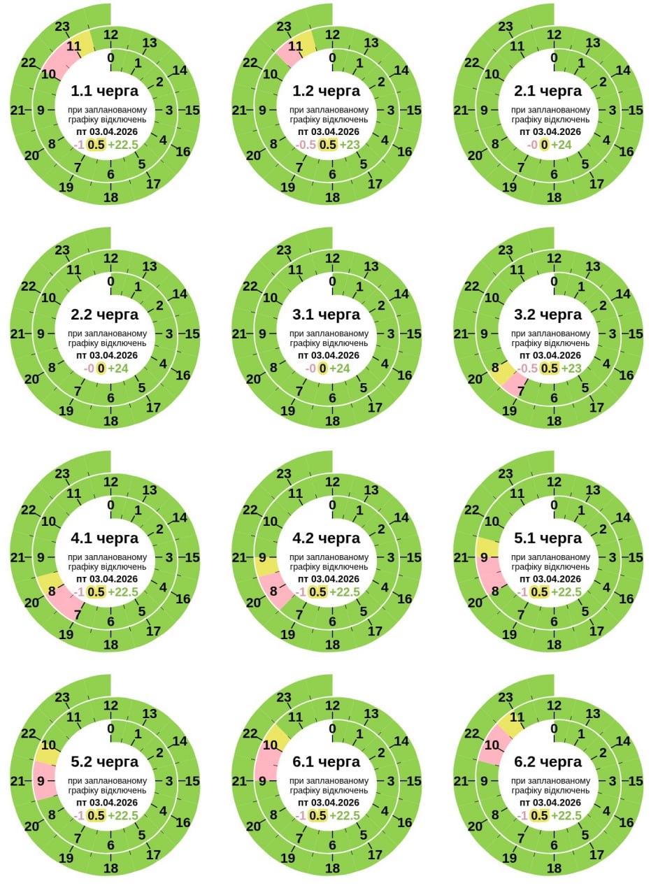 - Графіки будуть нерівномірними у різних районах через особливості пошкоджень енергосистеми.