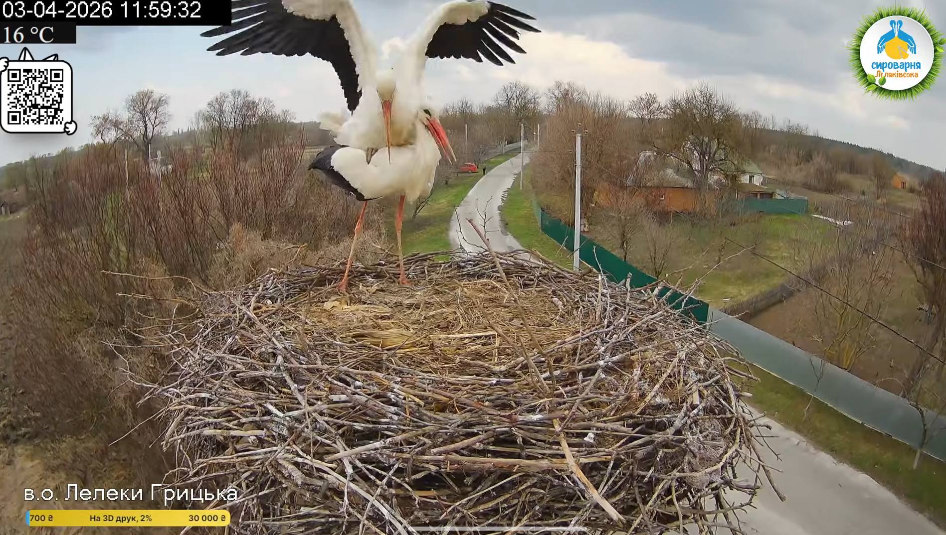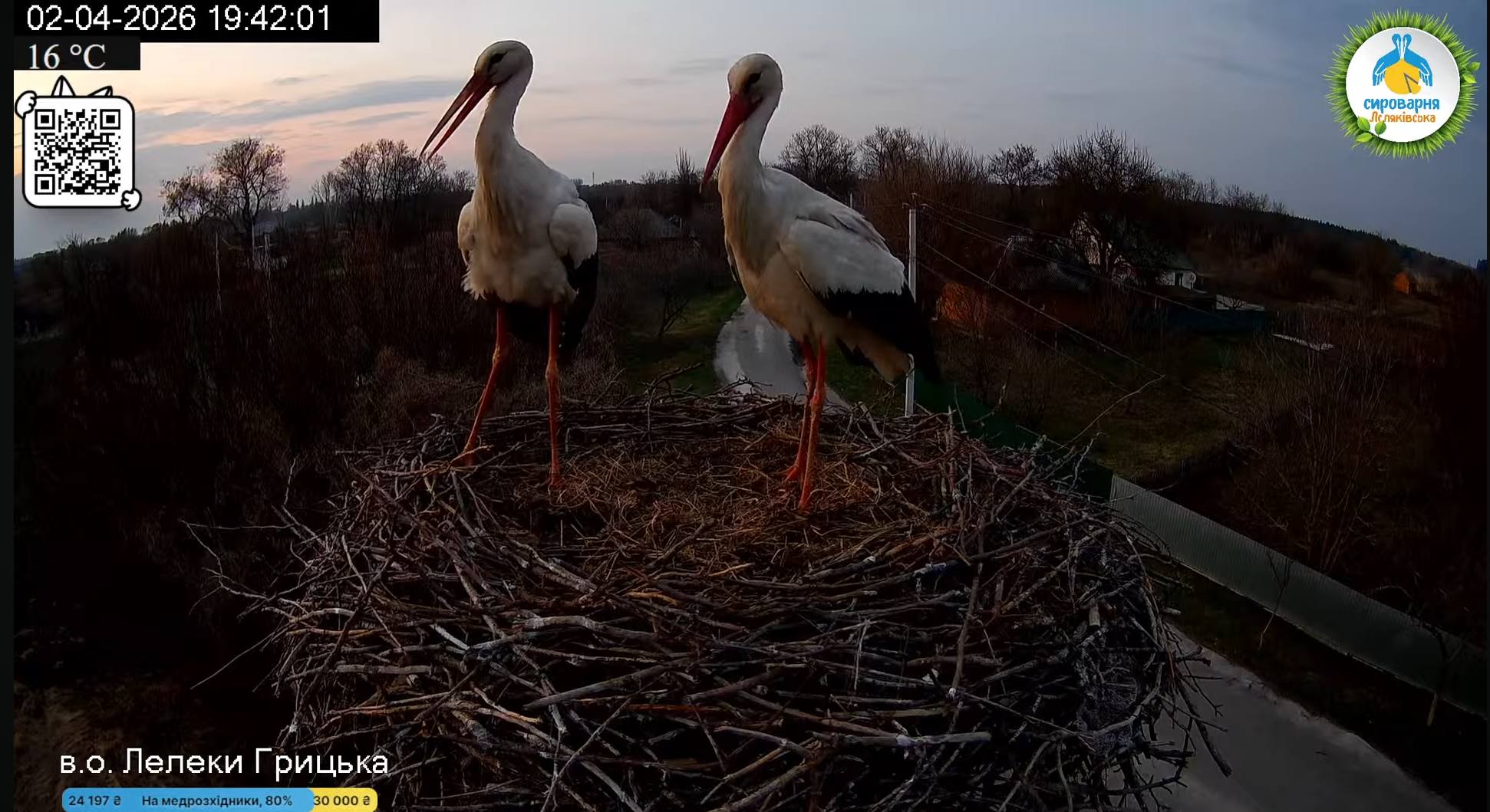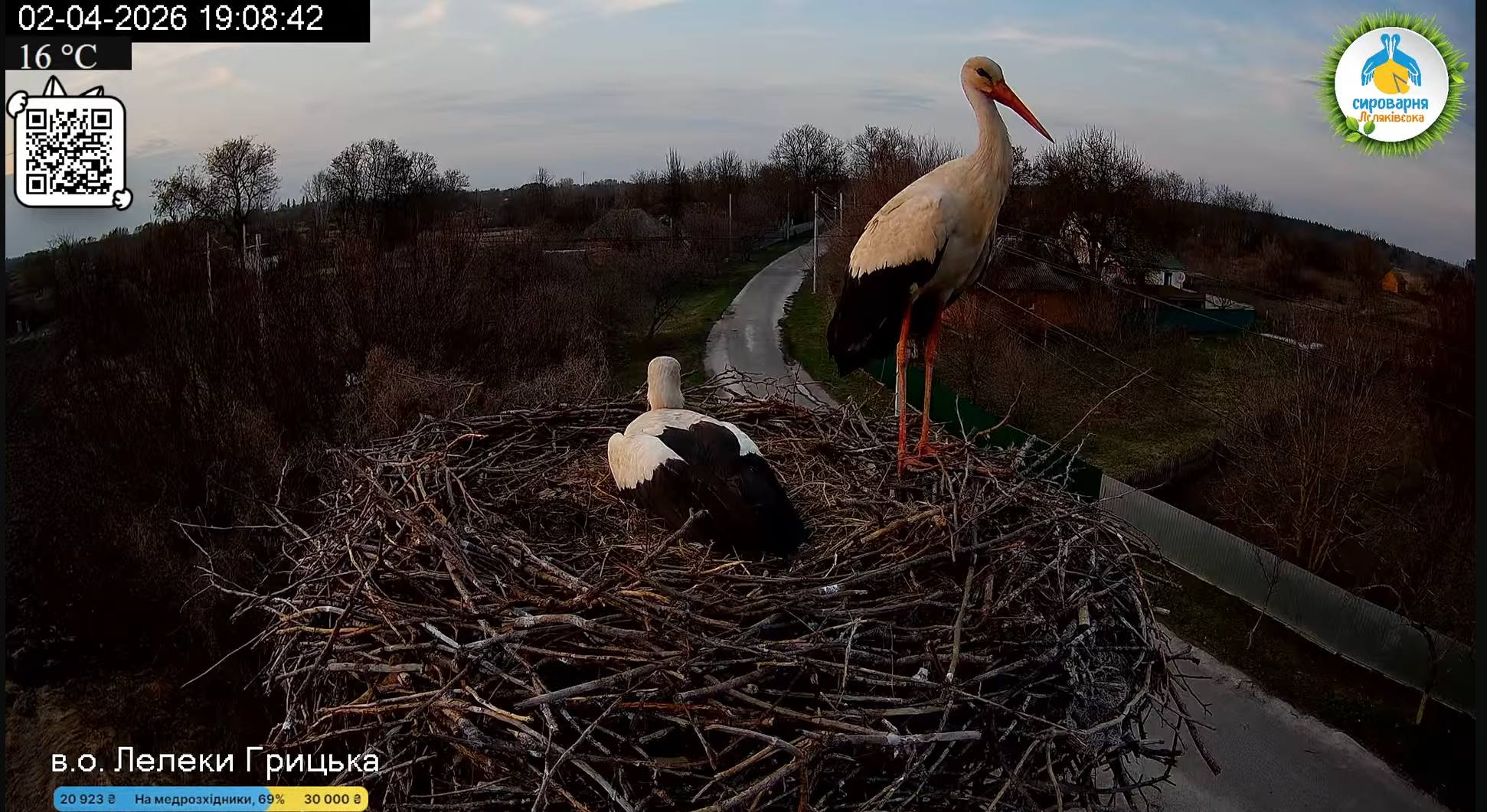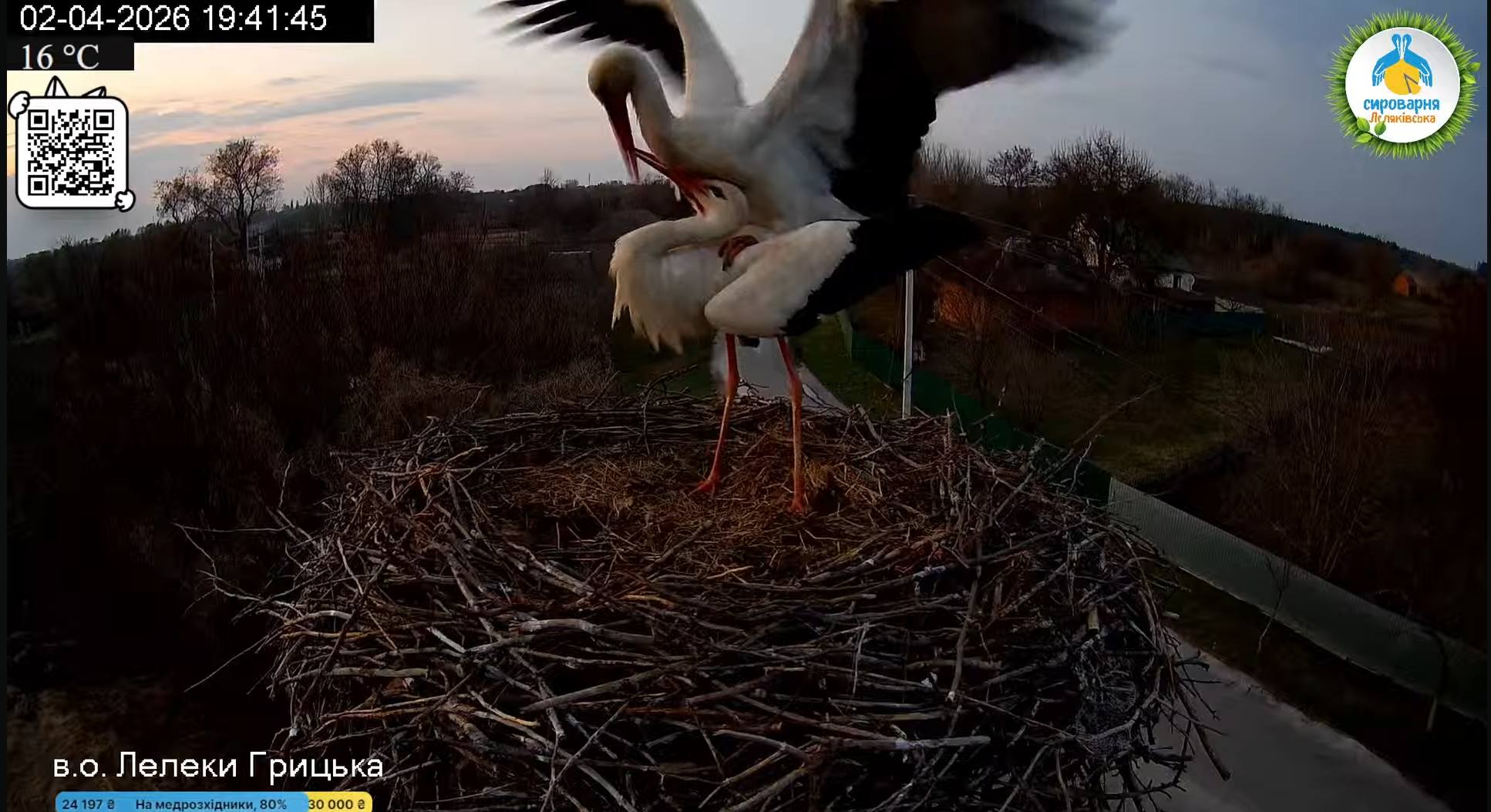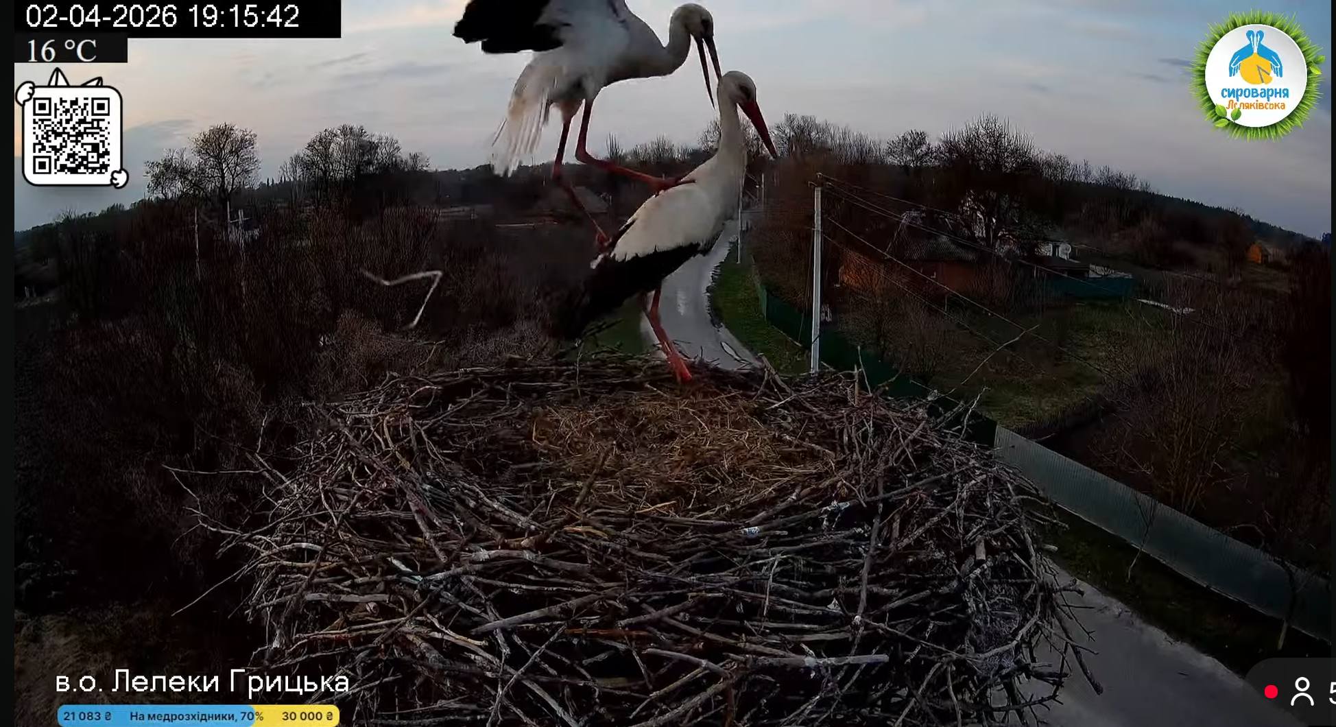 У четвер, 2 квітня, о 19:04:58 відеокамера, установлена на лелечому гнізді у селі Леляки під Пирятином на Полтавщині, звідки ведеться цілодобовий стрім, зафіксувала приліт самки.