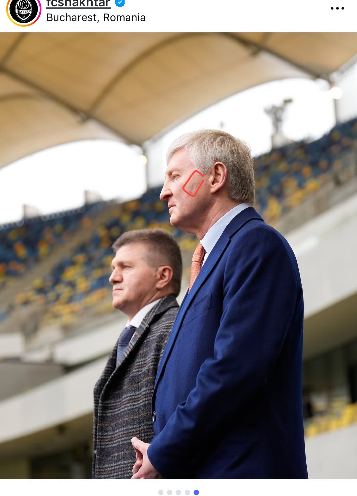 Після церемонії прощання Ахметов відвідав матч Ліги конференцій "Шахтар" — АЗ, який пройшов у Кракові. Його пресслужба опублікувала фото мільярдера, де, якщо придивитися, можна побачити пластир на обличчі бізнесмена.
