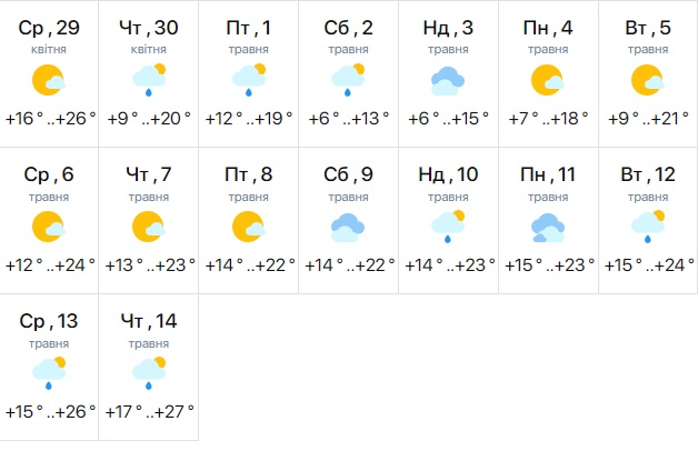 Схожу думку публікують і синоптики accuweather. Вони також вважають, що наприкінці квітня до обласного центру прийде потепління. Фахівці прогнозують, що стовпчики термометрів у період з 31 квітня по 4 травня будуть на рівні +9+21 градус.