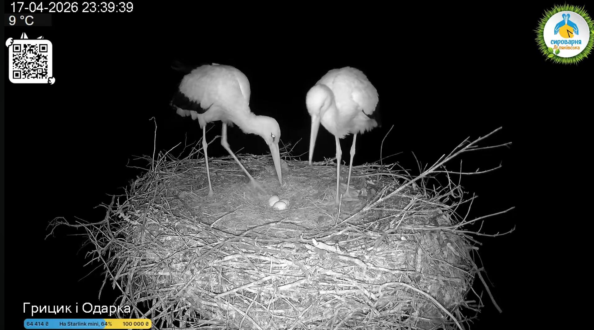 "Найочікуваніша подія вечора – це, звісно, сподівання на появу третього яйця в гнізді Грицика та Одарки. Уже традиційно понад 500 глядачів чекали в чаті, коли ж воно нарешті з'явиться, дуже просили, щоб раніше, ніж опівночі. Одарка прислухалася: знесла своє третє яйце 17 квітня о 23:14, показавши його всім о 23:24", — написала вона.