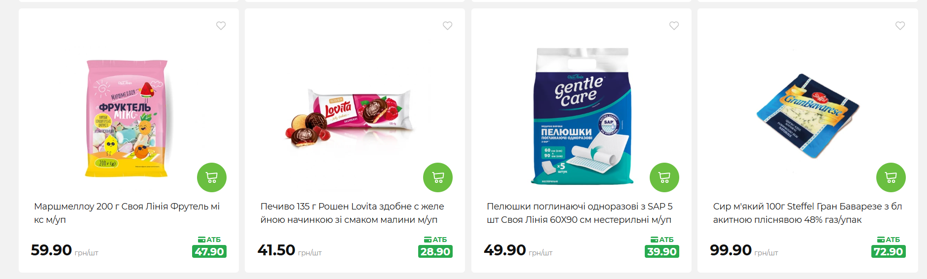 Певний асортимент товарів для власників Картки "АТБ" продається зі знижкою до -40%, і цей перелік постійно оновлюється. Також на 500-700 найменувань ще 5% знижки додатково. Перелік товарів змінюється кожні 1-2 тижні. "Такі товари позначені спеціальними цінниками", — йдеться на сайті "АТБ".